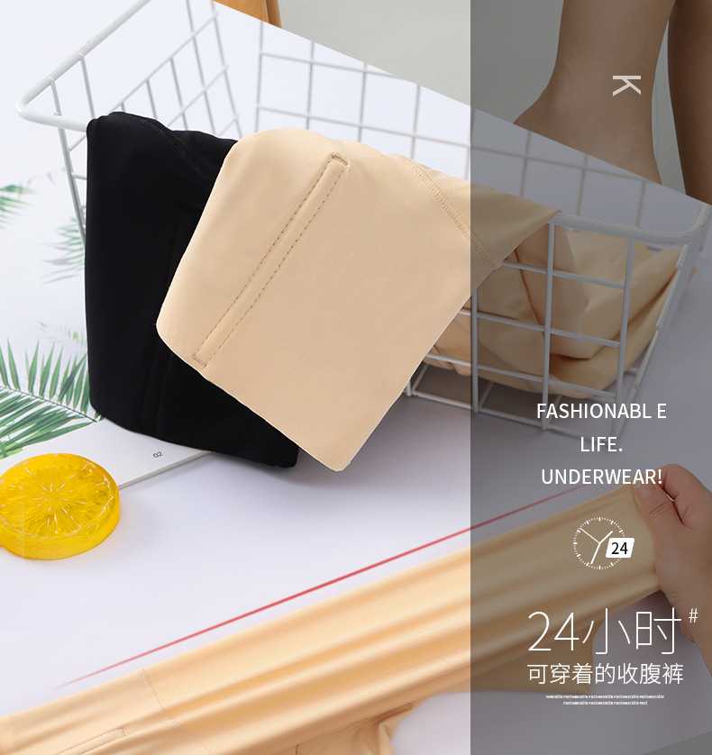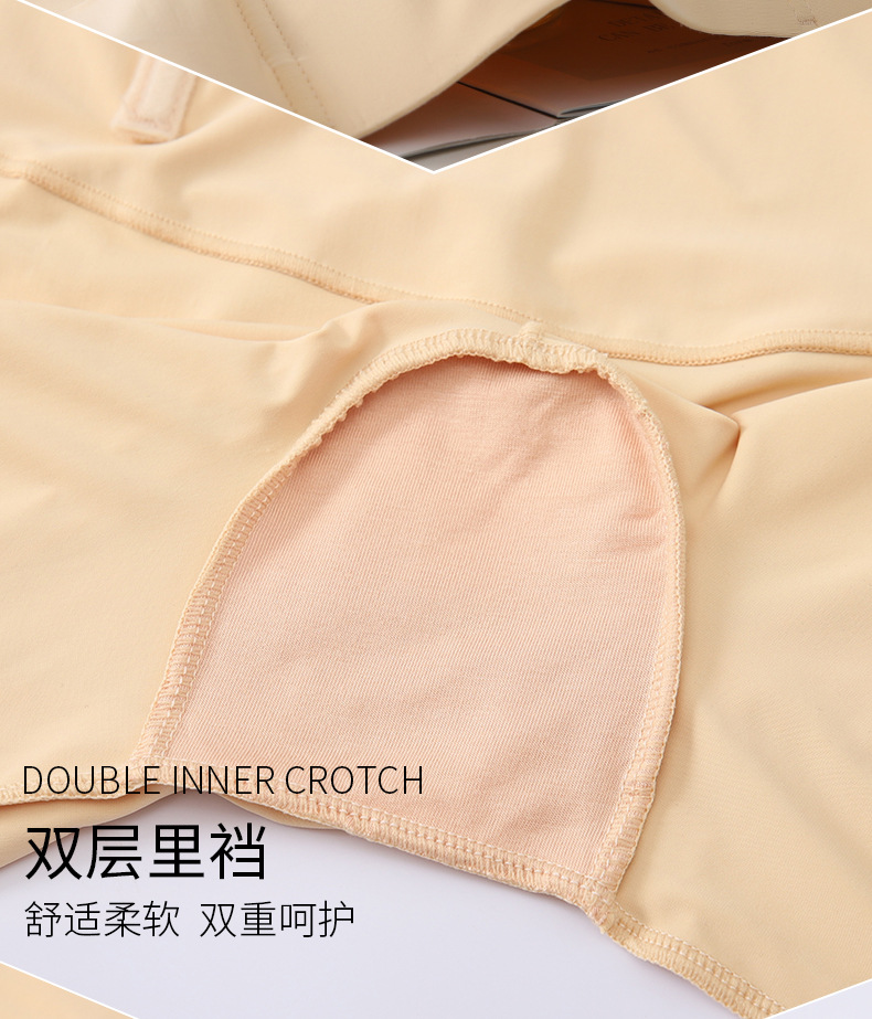 공장 직공급 하이 웨이스트 벨리 아이스 실크 원활한 안전 바지 여성용 면 가랑이 안티 라이트 여성용 3 점 레깅스