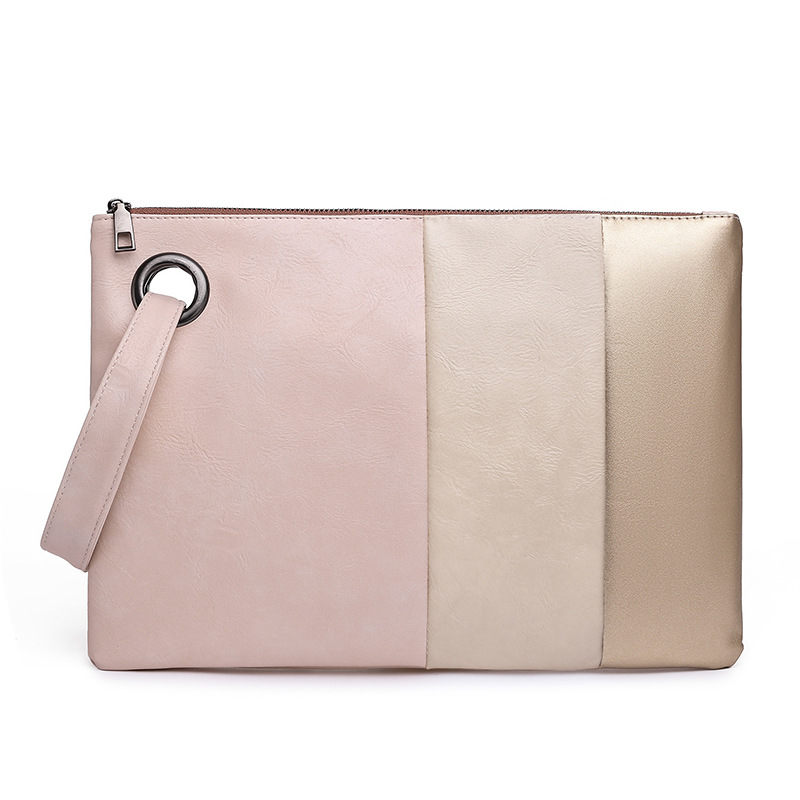 【产品特色】简约设计经典女生腋下手包;产品使用经典复古仿皮纹路PU皮,可装A4纸大小的高可用性设计;定制大号五金开孔配同料加粗手腕带,方便使用,拉力强劲;多个纯色系和拼接色系可选,可搭配各种风格出行。