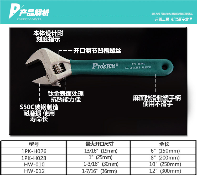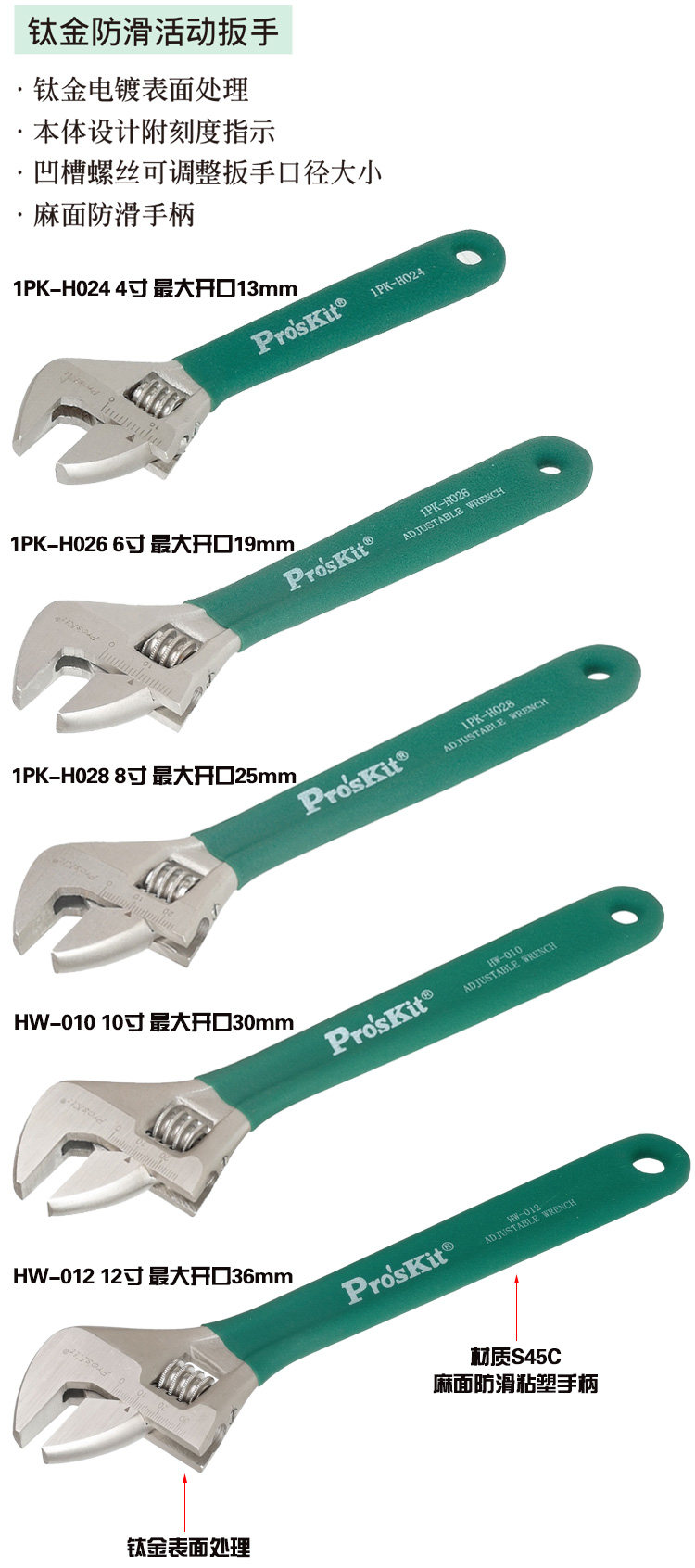 대만 Baogong 1PK-H026 HW-012 조절 렌치 라이브 렌치 4 인치/6 인치/8 인치/10 인치/12 인치