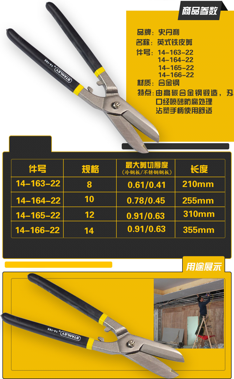 스탠리 영국 철 가위 철제 와이어 스테인레스 스틸 플레이트 가위 8 ~ 10 ~ 14 인치 14-163/64 /65 /66