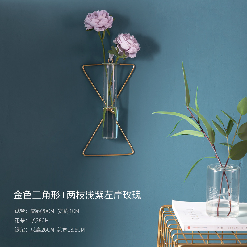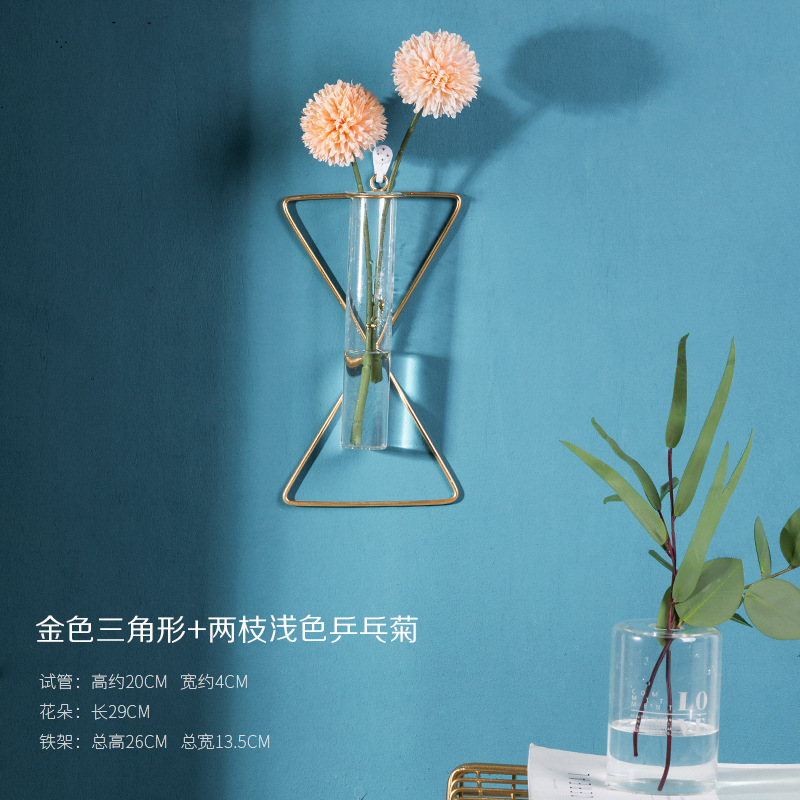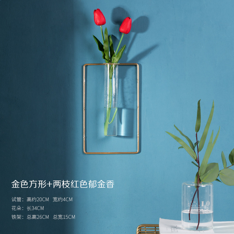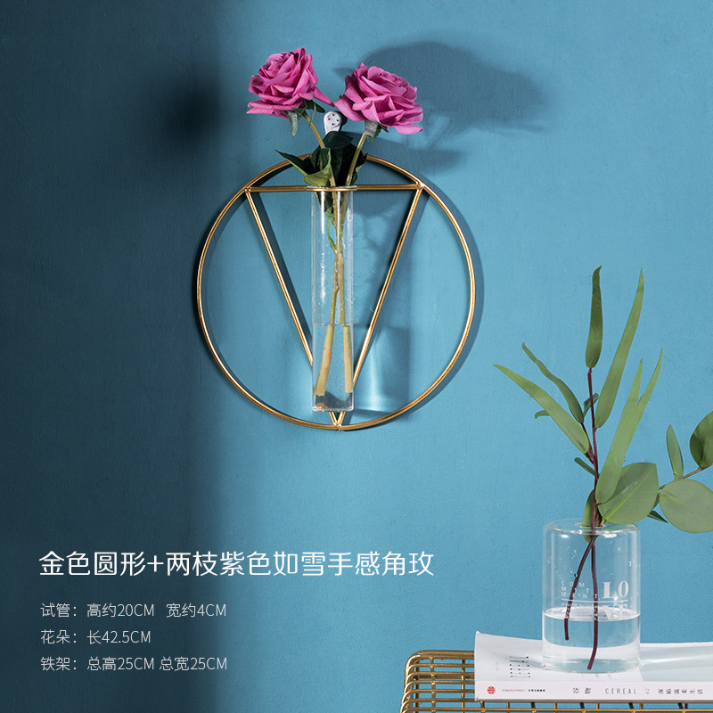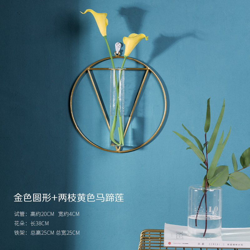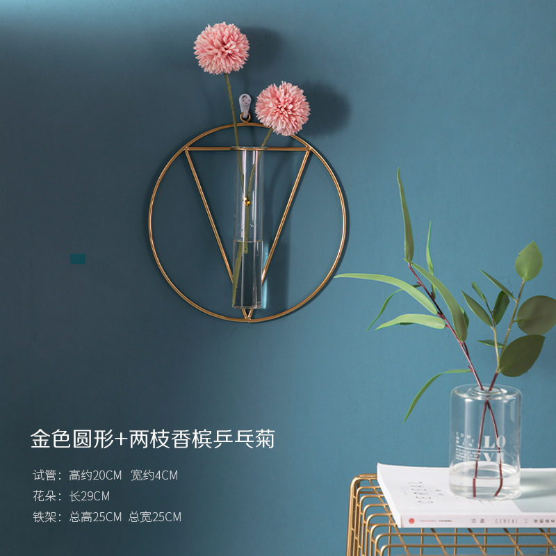 북유럽 창조적 인 벽 장식 펜던트 유리 꽃병 철 벽 마운트 룸 벽 벽