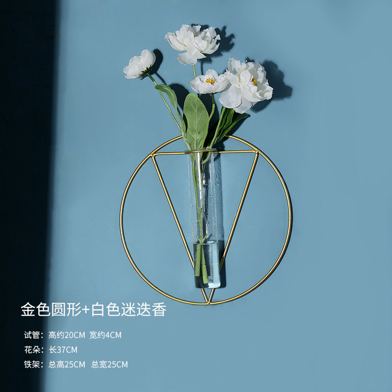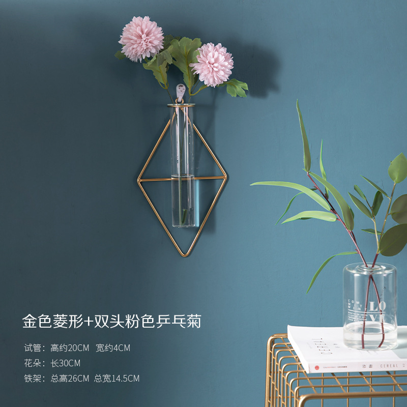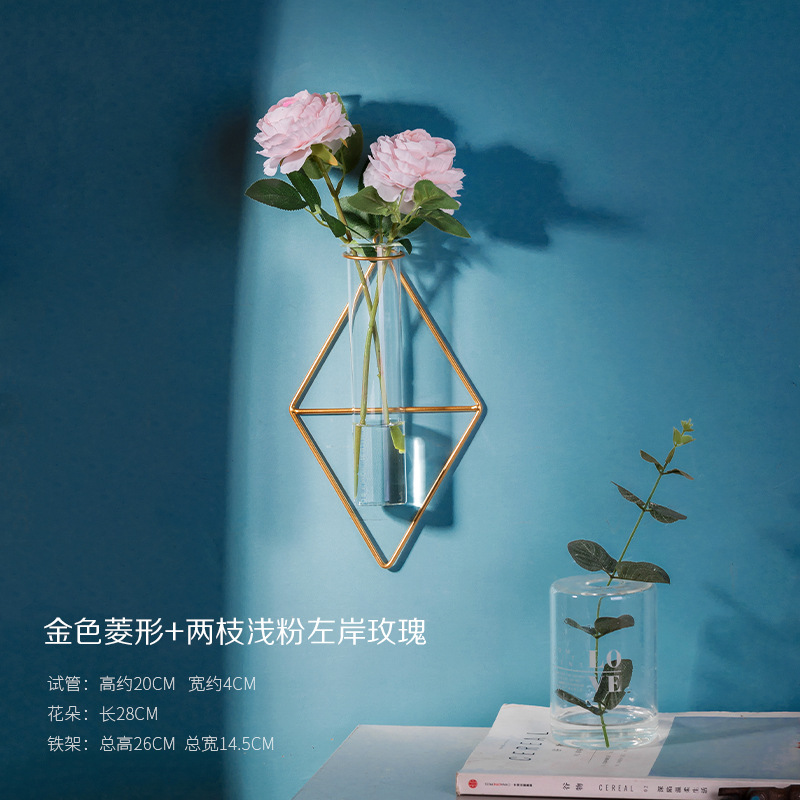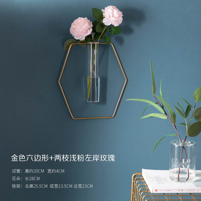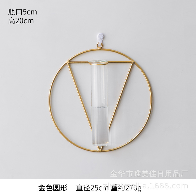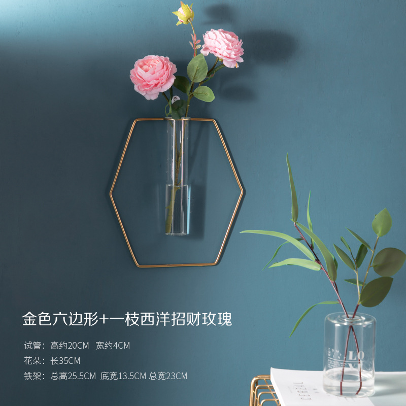 북유럽 창조적 인 벽 장식 펜던트 유리 꽃병 철 벽 마운트 룸 벽 벽