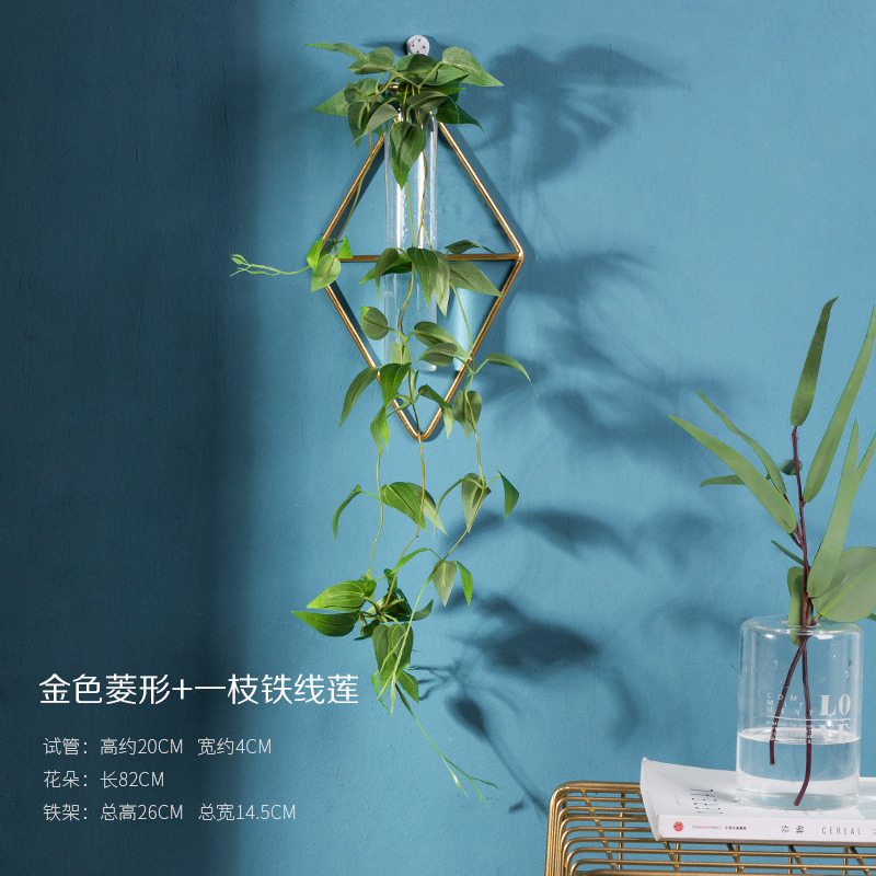 북유럽 창조적 인 벽 장식 펜던트 유리 꽃병 철 벽 마운트 룸 벽 벽스토어 가기