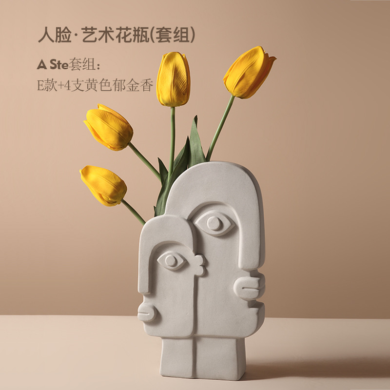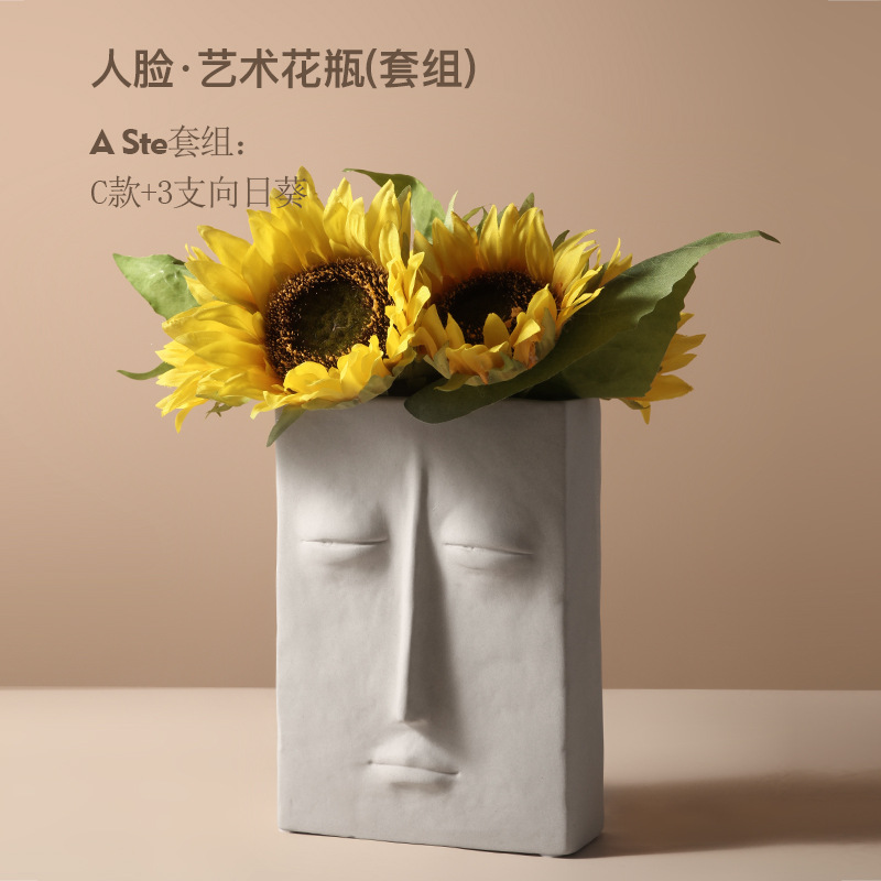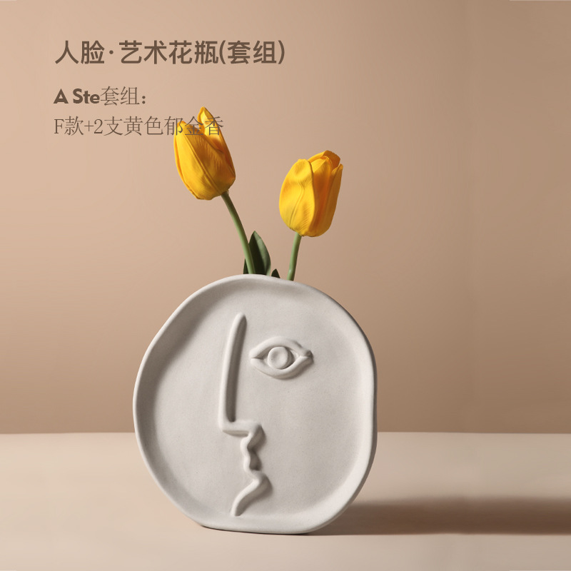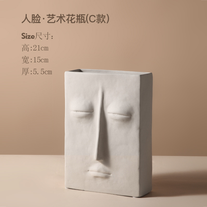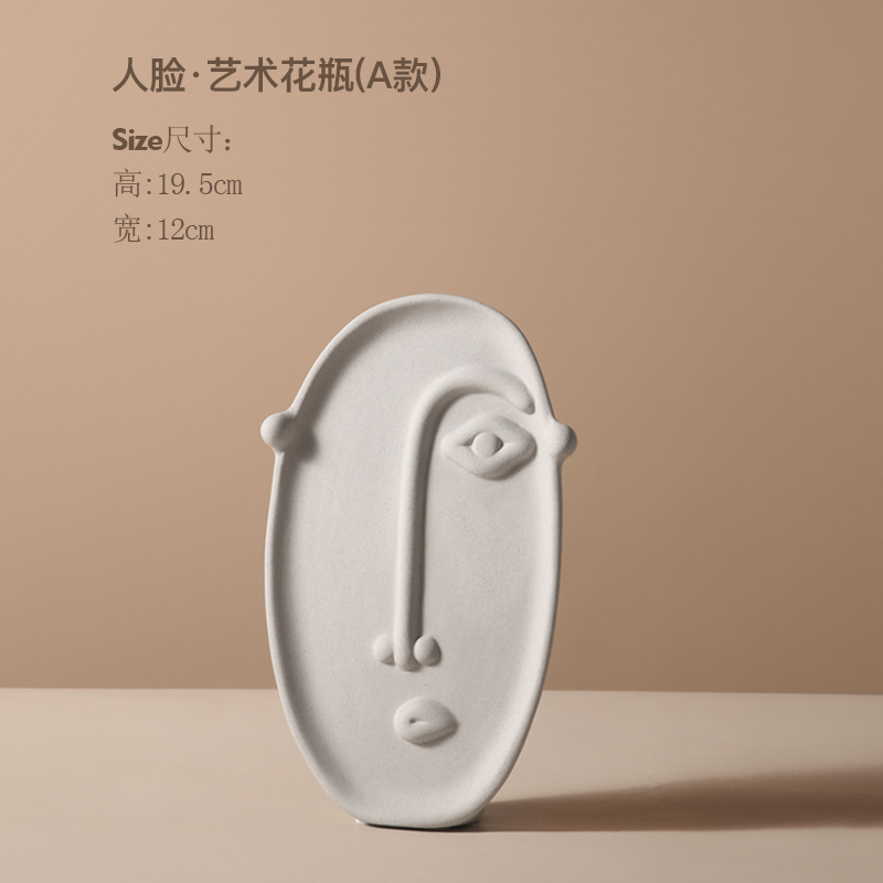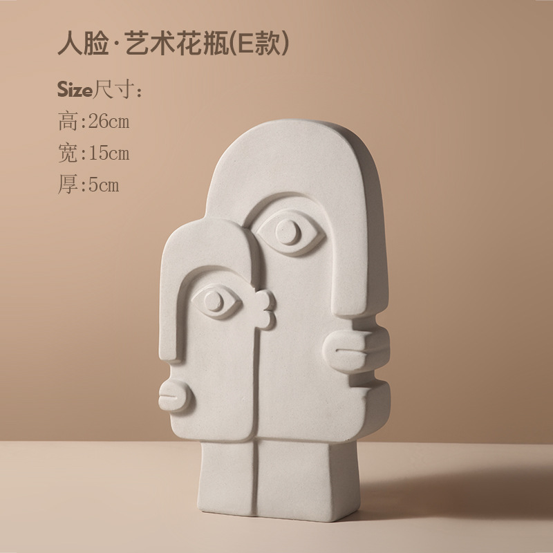Behanmei 복고풍 와비사비 스타일 창의적인 세라믹 꽃병 고급 인형 얼굴 장식품 홈 장식 장식품