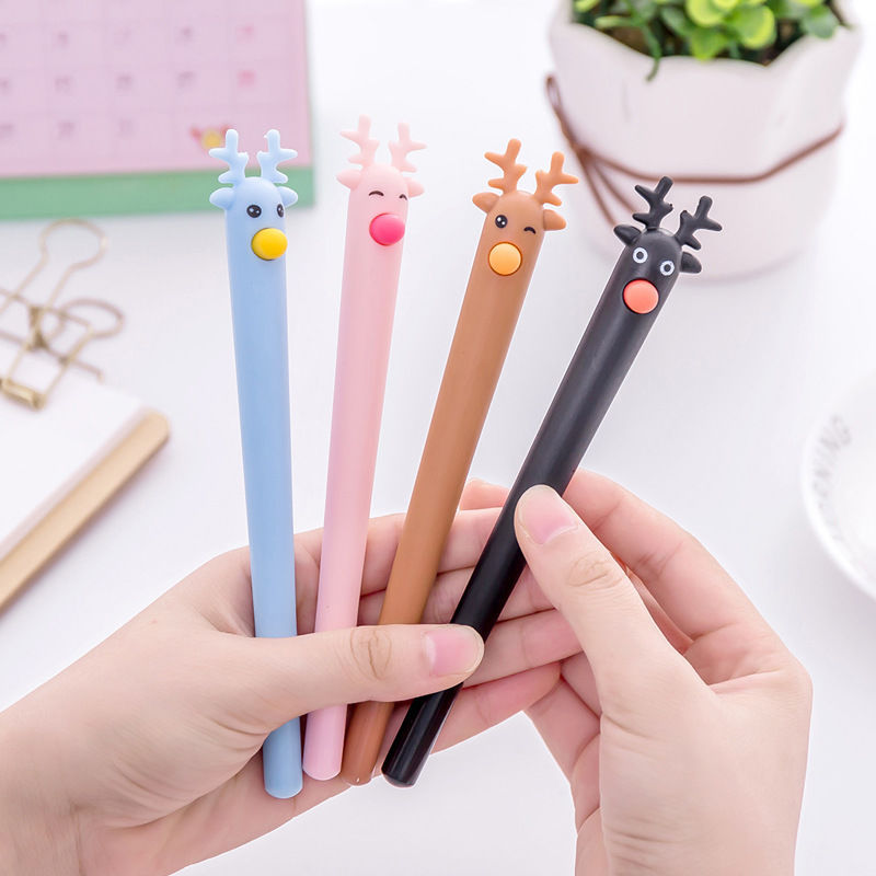 창의적인 만화 귀여운 실리콘 엘크 모양 젤 펜 크리스마스 사슴 0.5mm 검정색 수성 서명 펜스토어 가기