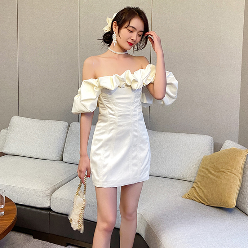 小心机褶皱 云卷泡泡肩的设计 优雅一字 衬托骨感锁骨