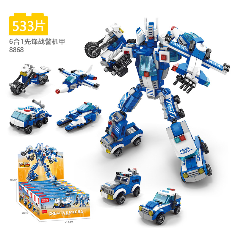 뜨거운 판매 어린이 조립 군사 특수 경찰차 메카 항공기 빌딩 블록 소년 조립 로봇 장난감 도매스토어 가기
