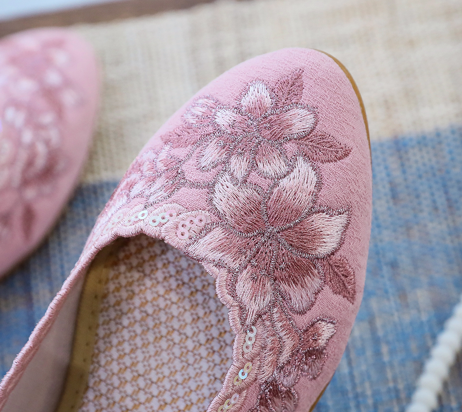 플랫 슈즈 부드러운 바닥 자수 천 신발 어머니 신발 스팽글 자수 패션 여성 캐주얼 신발스토어 가기