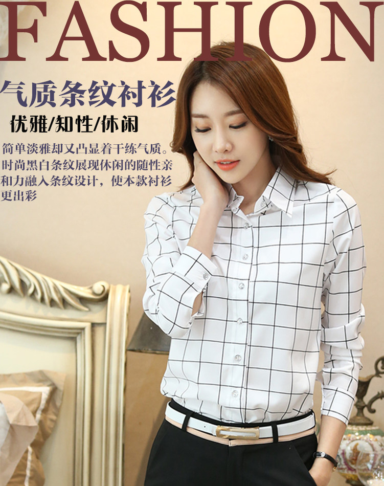 2020 봄과 가을 새 셔츠 긴 소매 한국 스타일 플러스 사이즈 여성의 스트라이프 탑 쉬폰베이스 셔츠 라펠 셔츠스토어 가기
