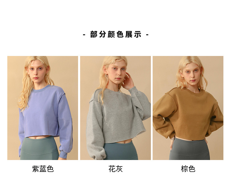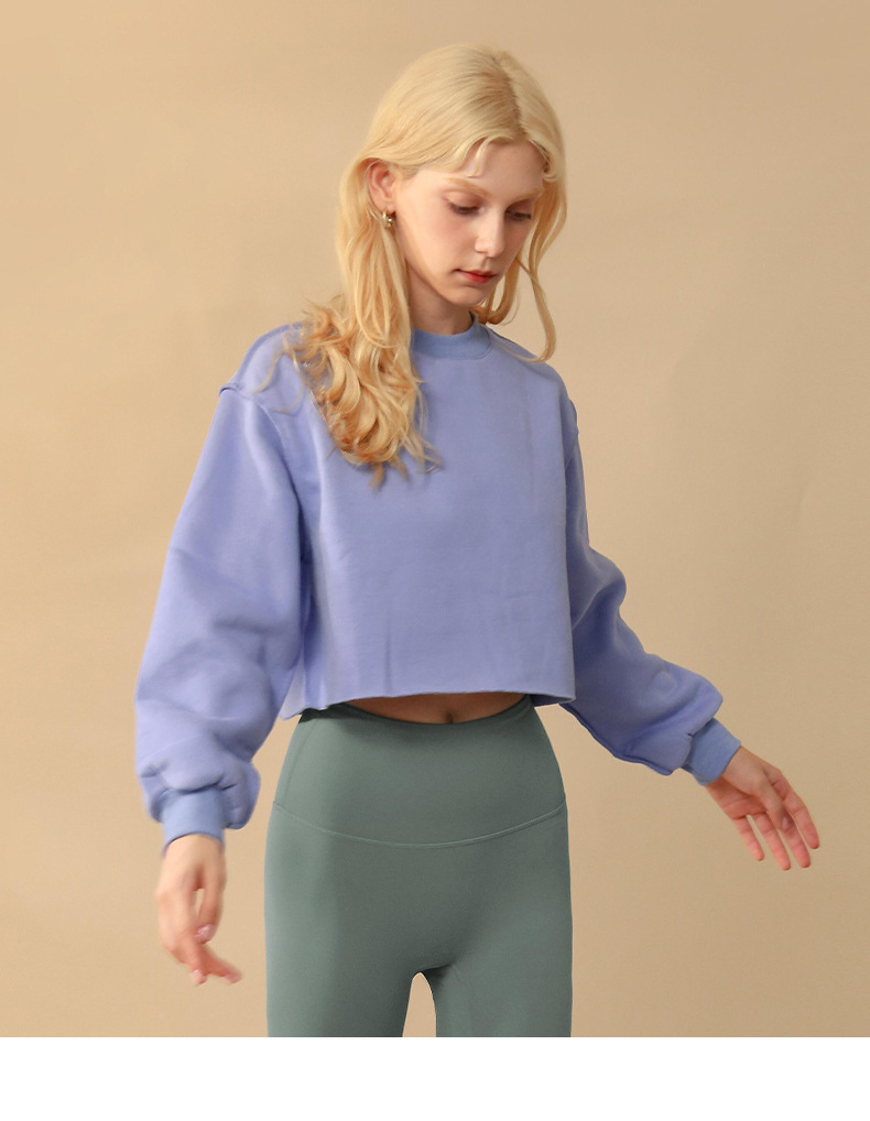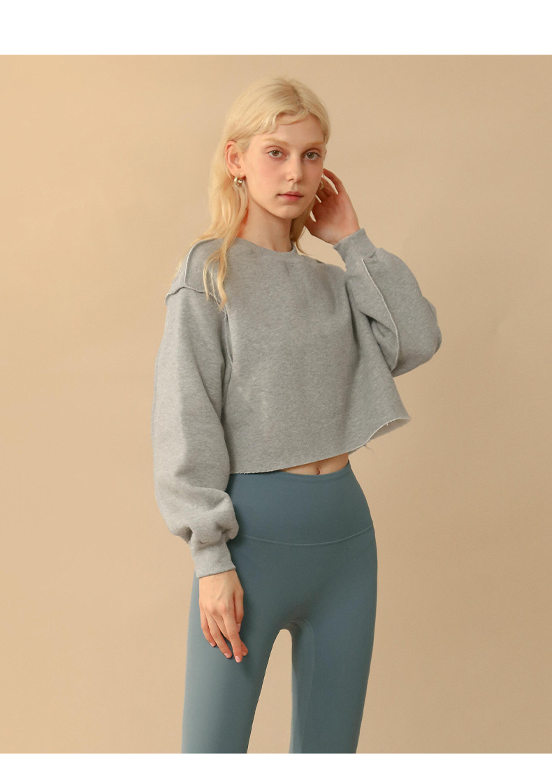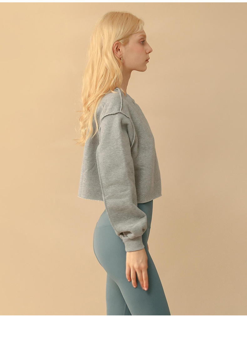 배꼽 짧은 스웨터 디자인 감각 유럽과 미국 크로스 보더 아마존 기모 긴 소매 피트니스 요가 스포츠웨어 최고 여성스토어 가기