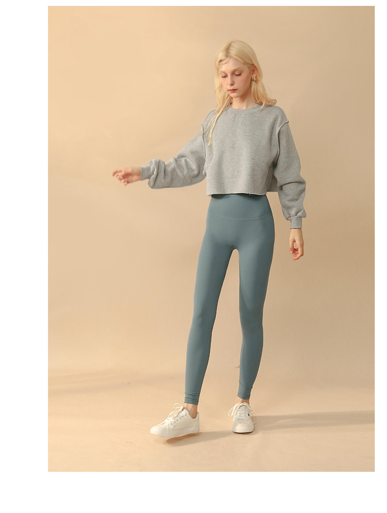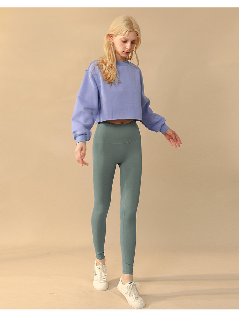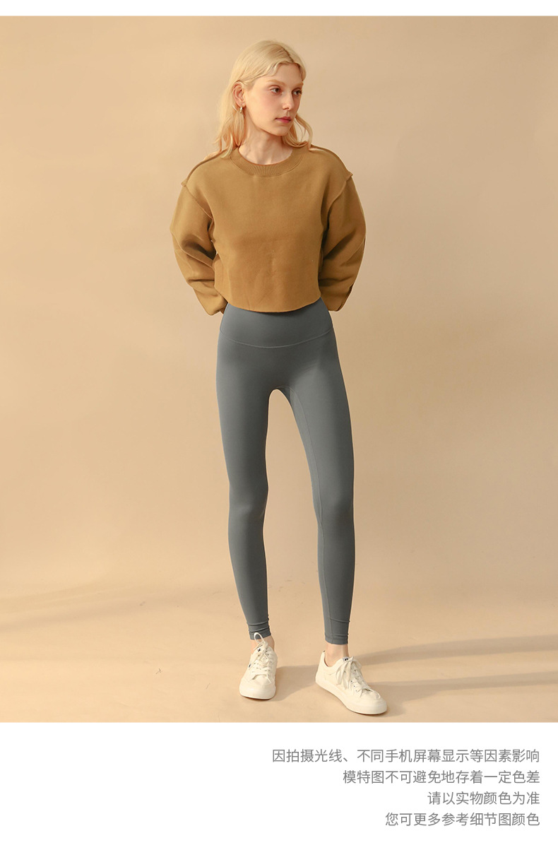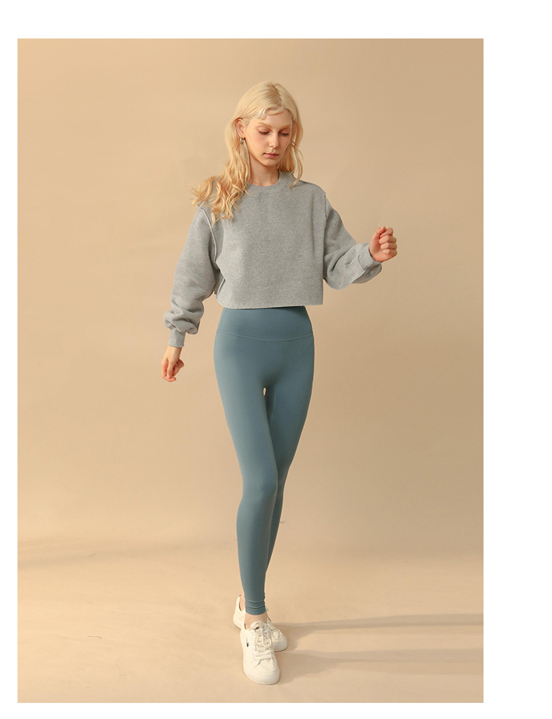 배꼽 짧은 스웨터 디자인 감각 유럽과 미국 크로스 보더 아마존 기모 긴 소매 피트니스 요가 스포츠웨어 최고 여성스토어 가기