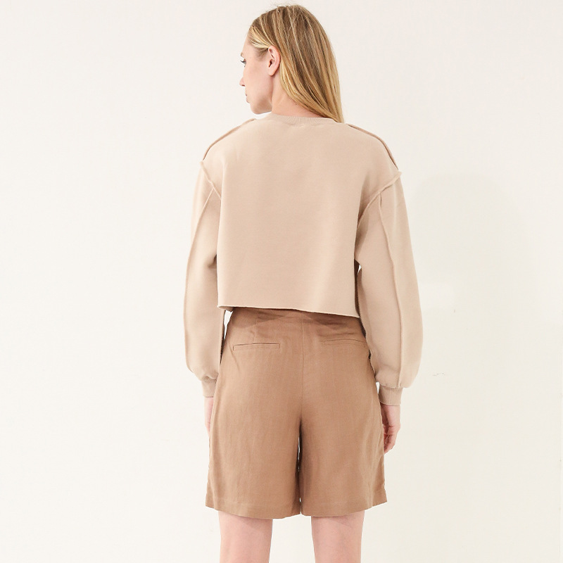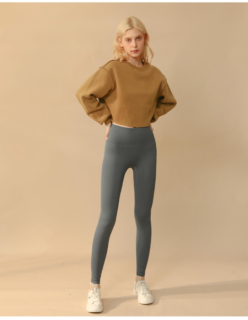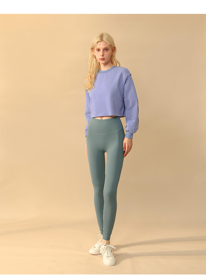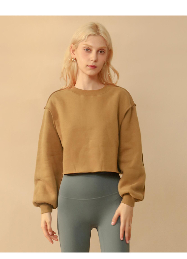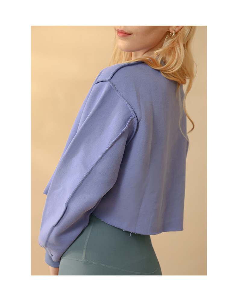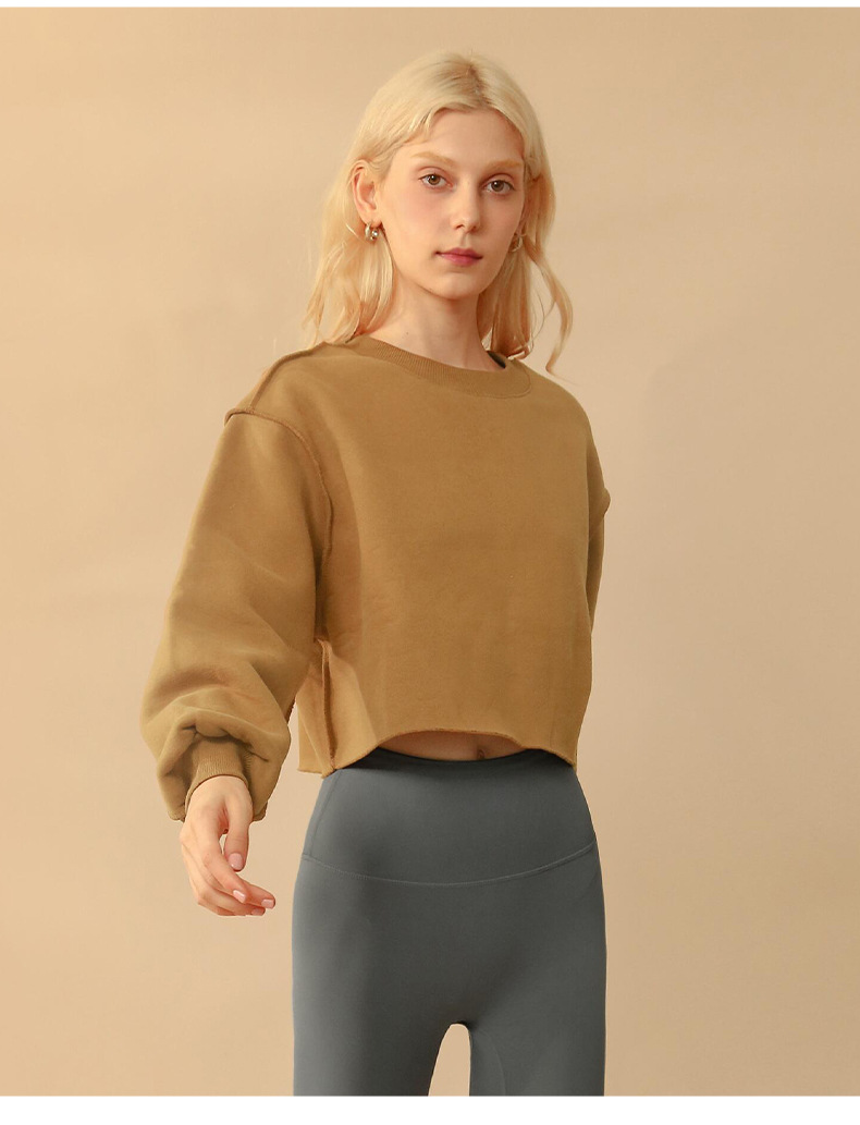 배꼽 짧은 스웨터 디자인 감각 유럽과 미국 크로스 보더 아마존 기모 긴 소매 피트니스 요가 스포츠웨어 최고 여성