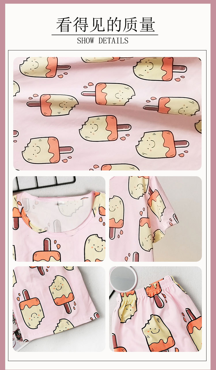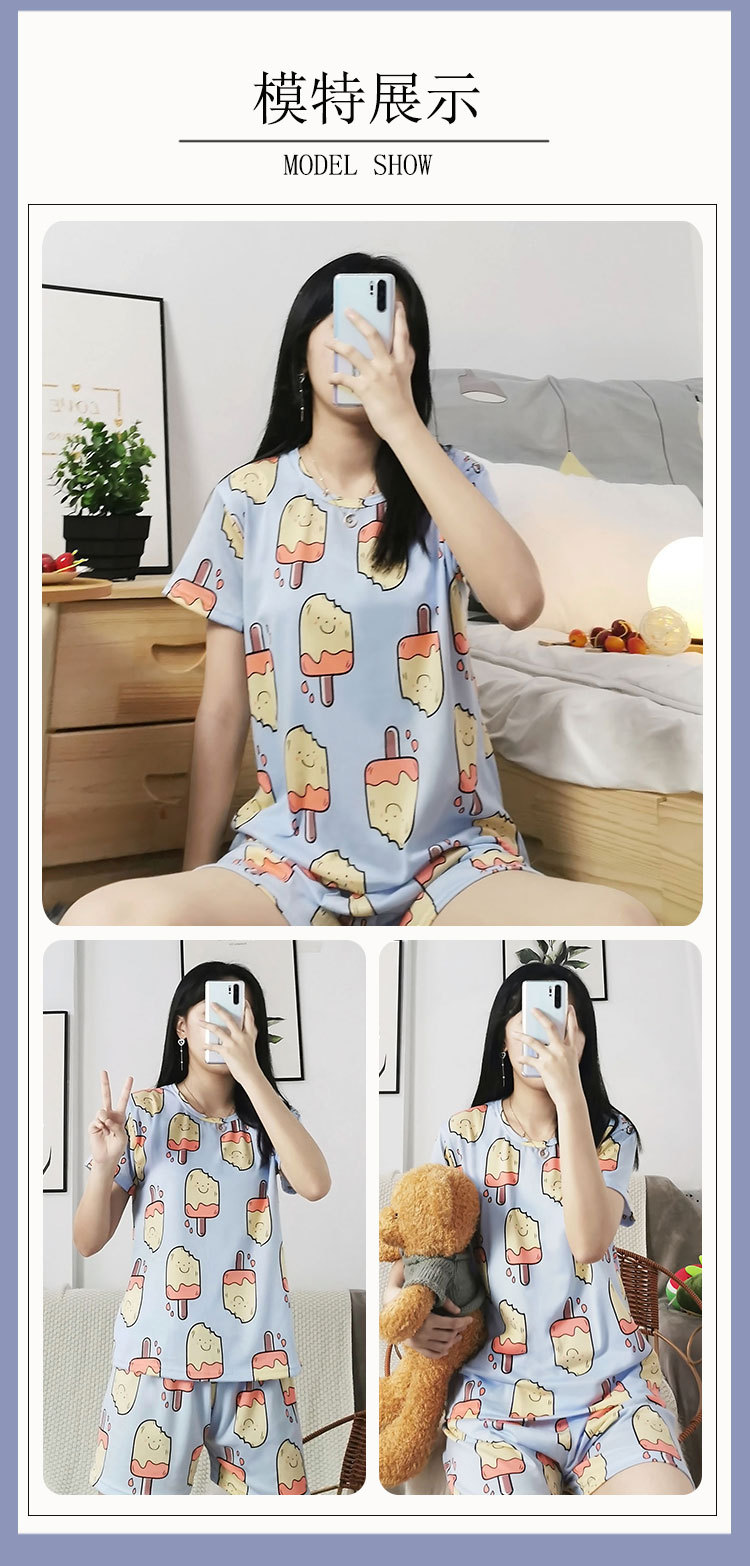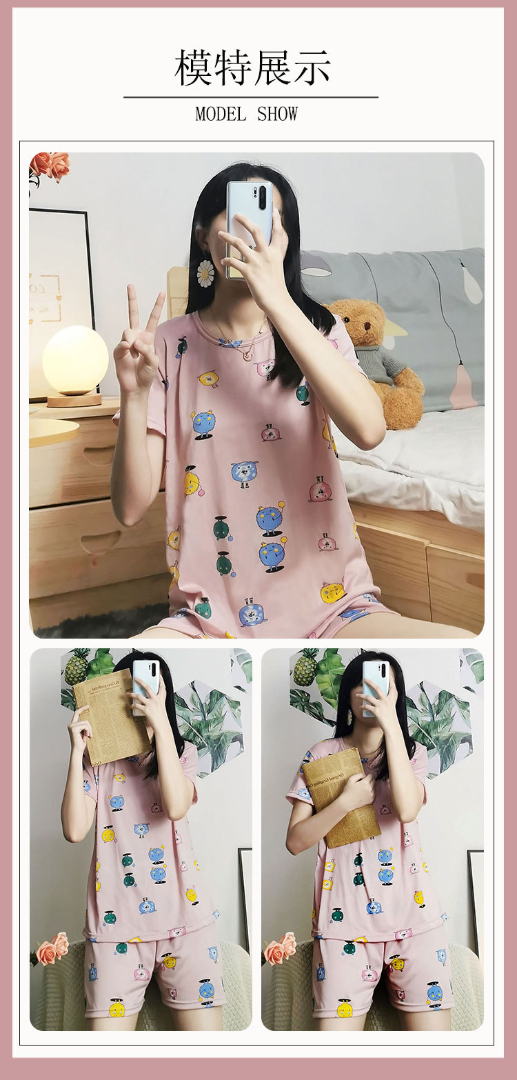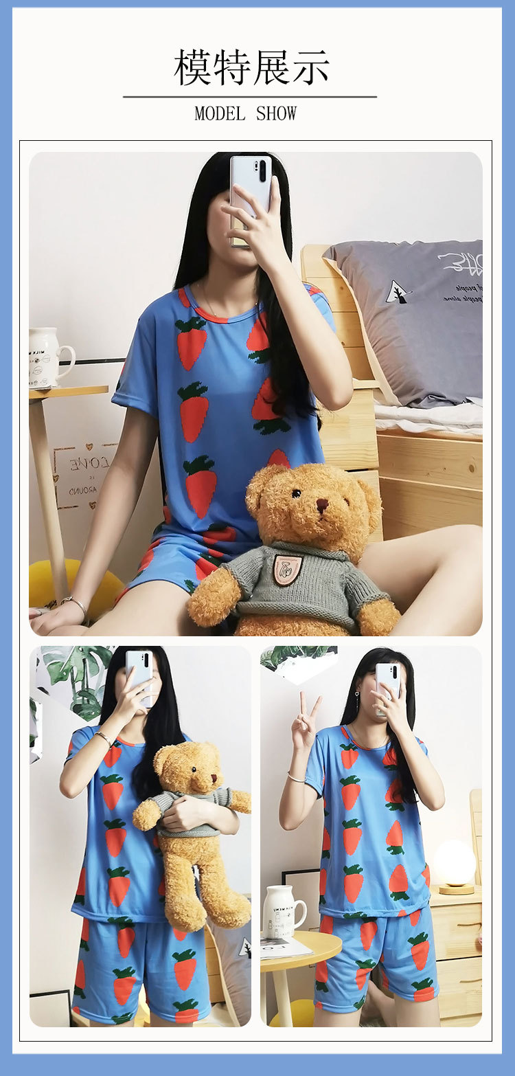 계절 정리 동남 아시아 여름 얇은 잠옷 여자의 반팔 반바지 귀여운 여자 가정복 세트 여름스토어 가기