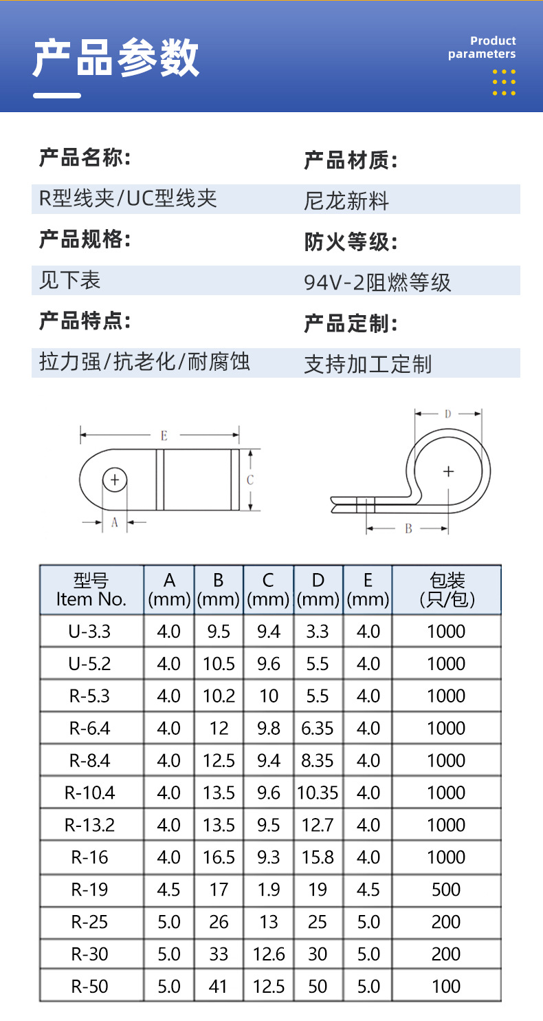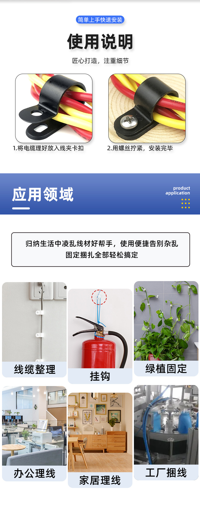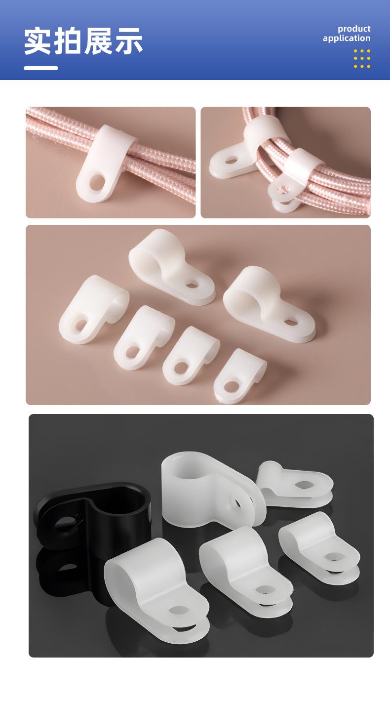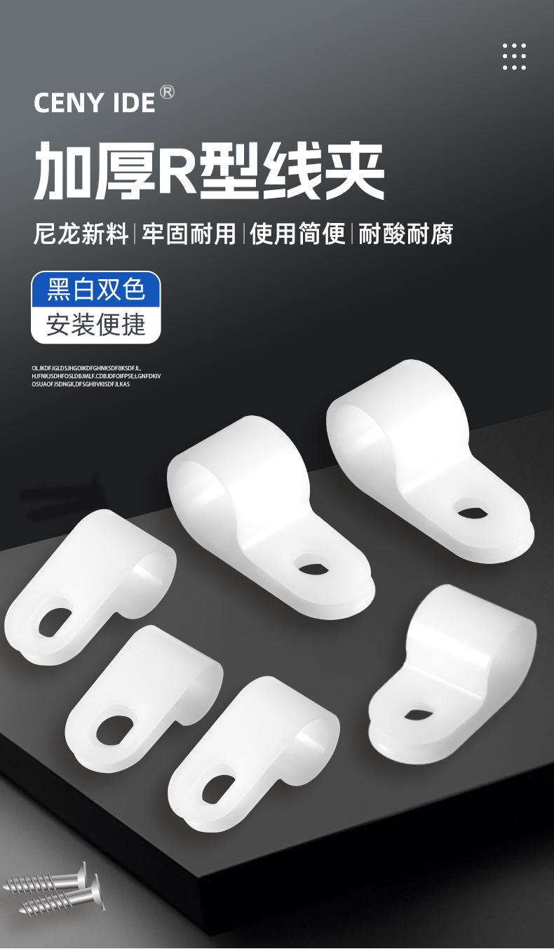 제조업체 도매 R형 와이어 클립 6.4 8.4 10.4 와이어 클립 및 와이어 버클 나일론 케이블 고정 클립 전선스토어 가기