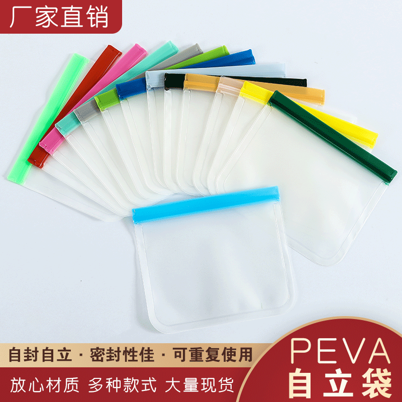 关于peva食品包装袋细节介绍拉链密封有双条轨道利于产品的密封的双保险设计,拉链部位可以有多种颜色选择,袋身通常磨砂半透明也有全透明选择;高端选择也可以选择潘通色卡上的色号,产品经过高温与磨具电压成型,可以做出多种造型且创新。