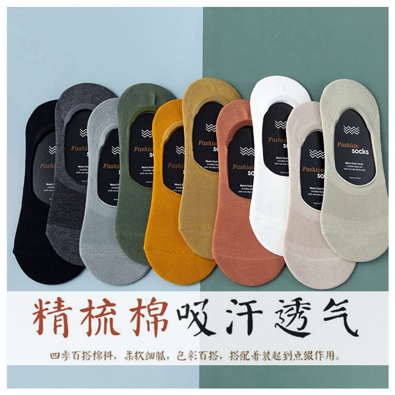 여름 얇은 얕은 입 짧은 양말 보이지 않는 보트 양말 남자의 단색 면 바닥 실리콘 미끄럼 방지 양말은 떨어지지 않습니다 메쉬 양말 남자