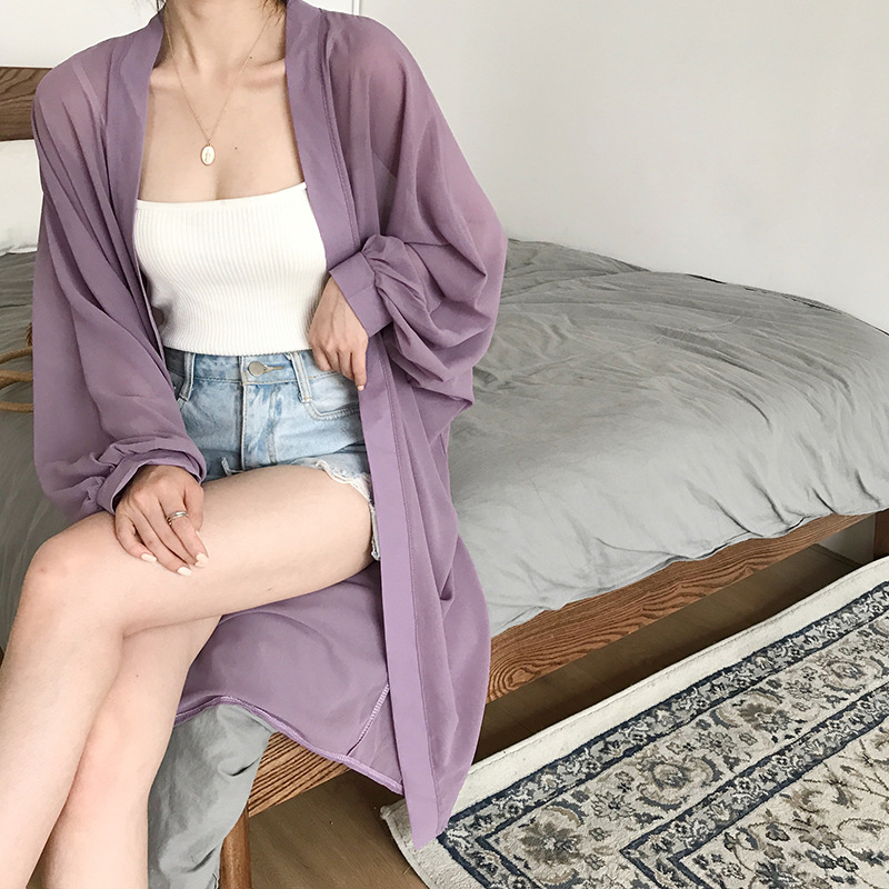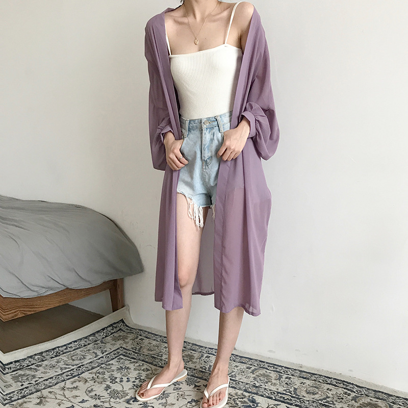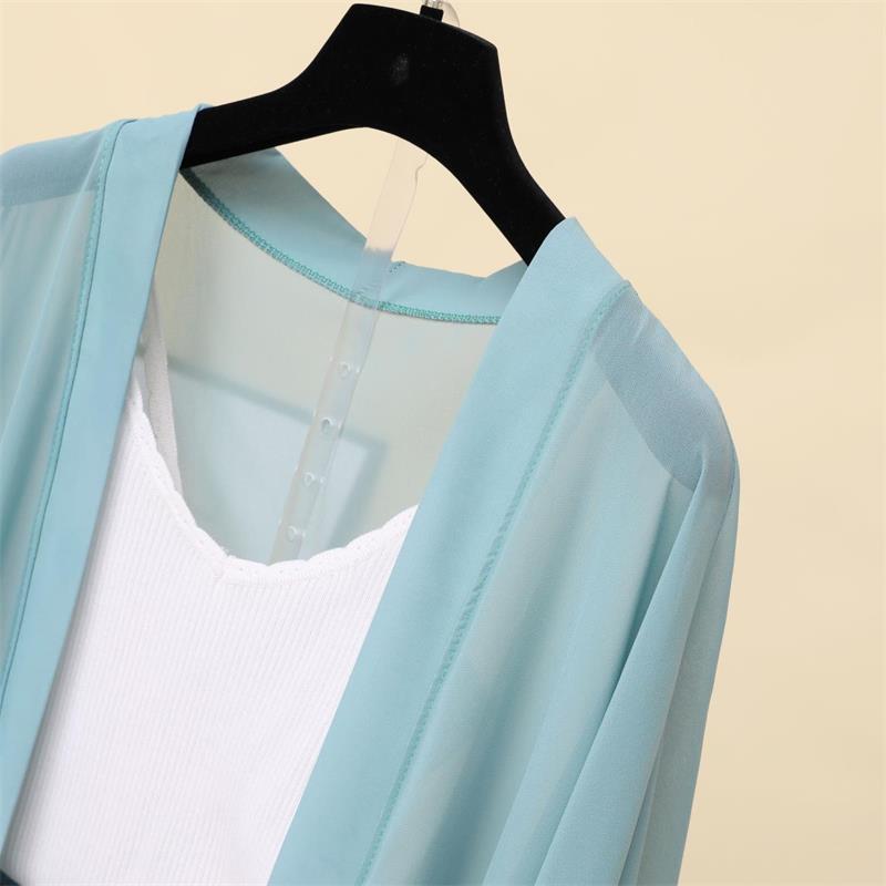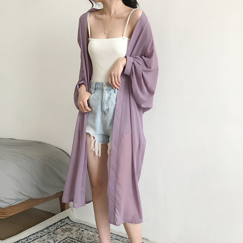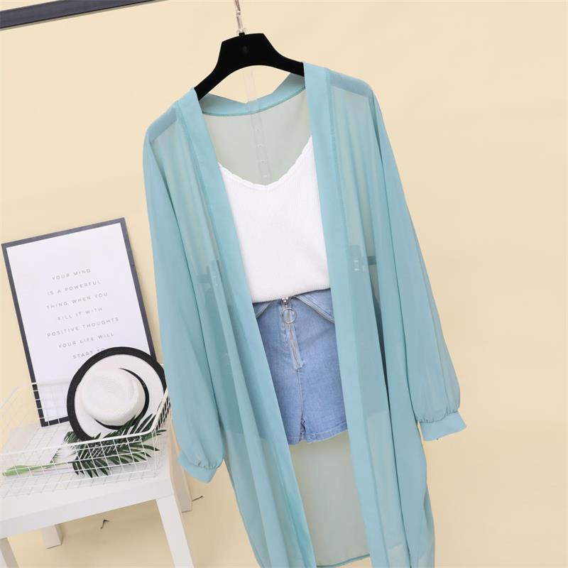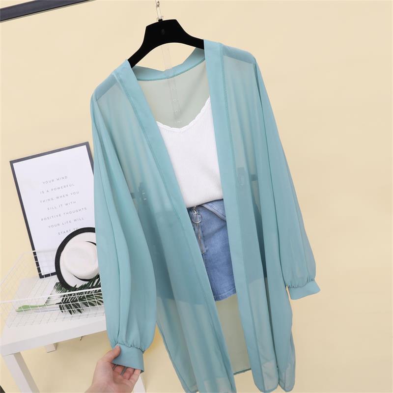 슈퍼 요정 태양 보호 의류 여성 중간 길이 쉬폰 카디건 학생 외부 목도리 초박형 재킷 유행 느슨한 태양 보호 셔츠