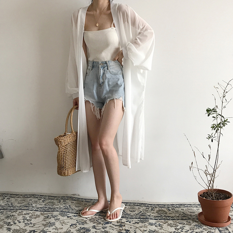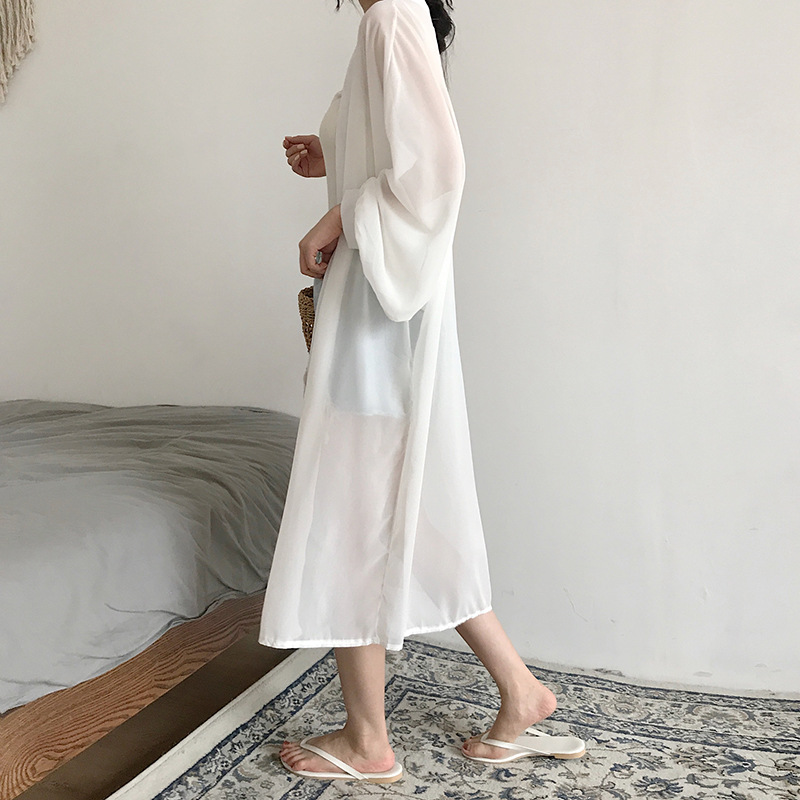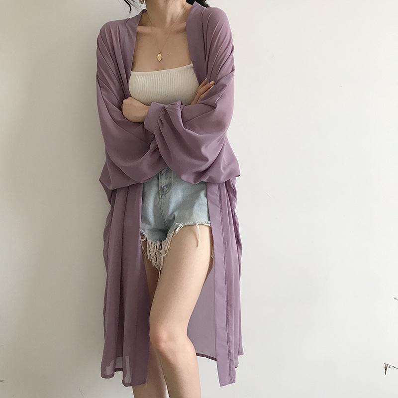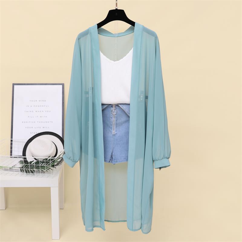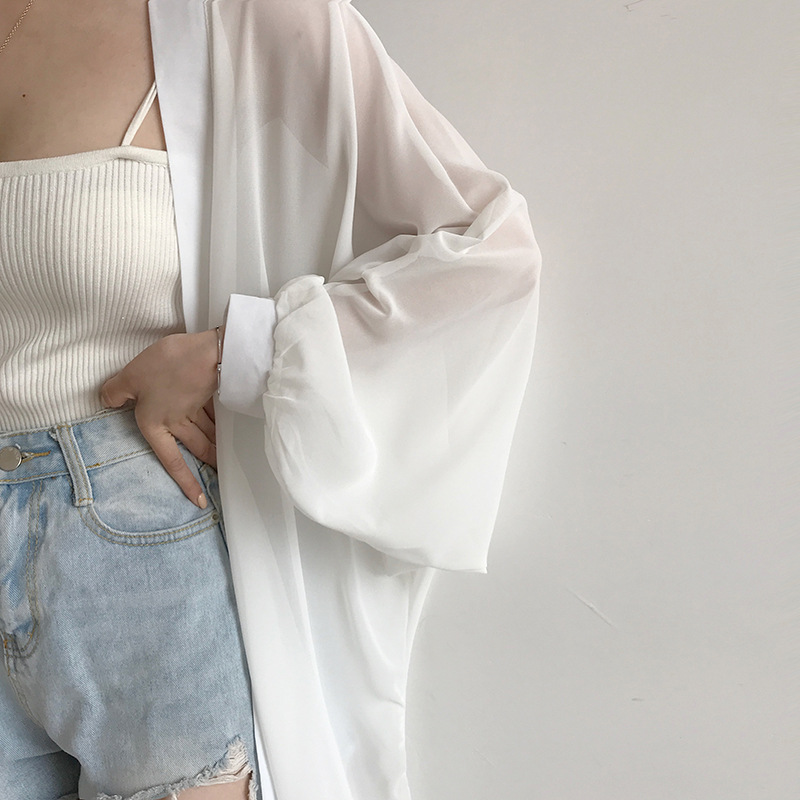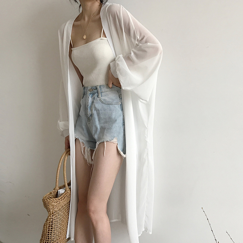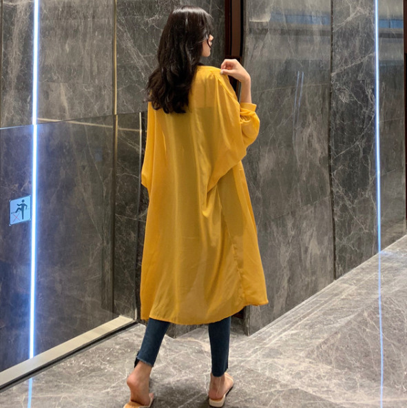 슈퍼 요정 태양 보호 의류 여성 중간 길이 쉬폰 카디건 학생 외부 목도리 초박형 재킷 유행 느슨한 태양 보호 셔츠