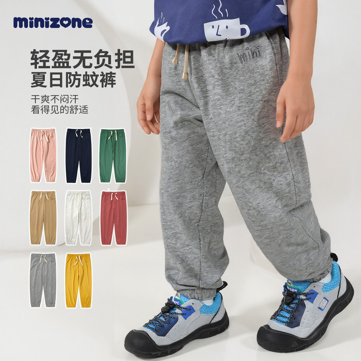minizone 어린이 면화 모기 방지 바지 소년과 소녀 스포츠 캐주얼 바지 아기 느슨한 바지 유럽과 미국 스타일