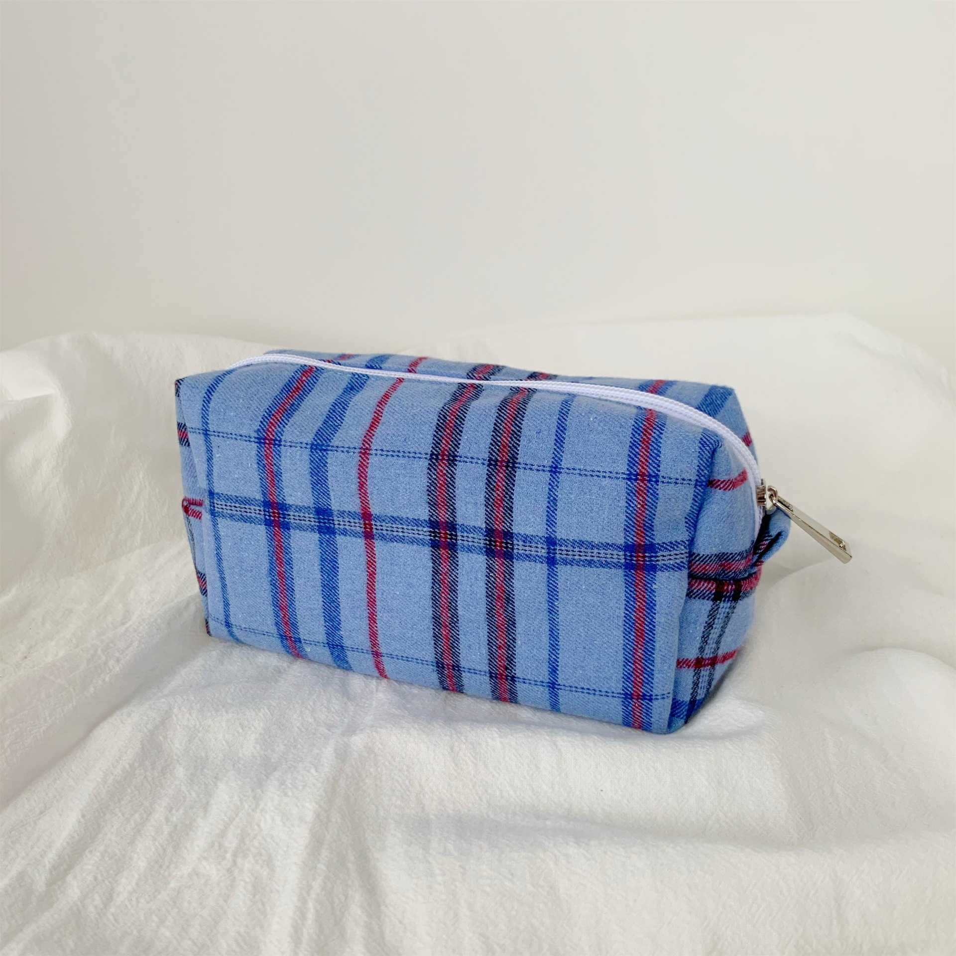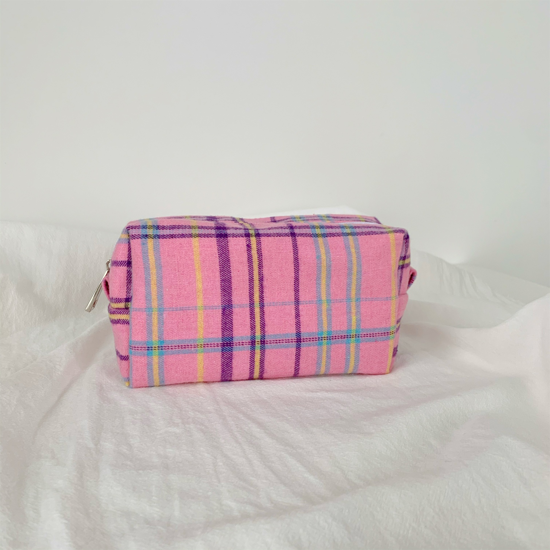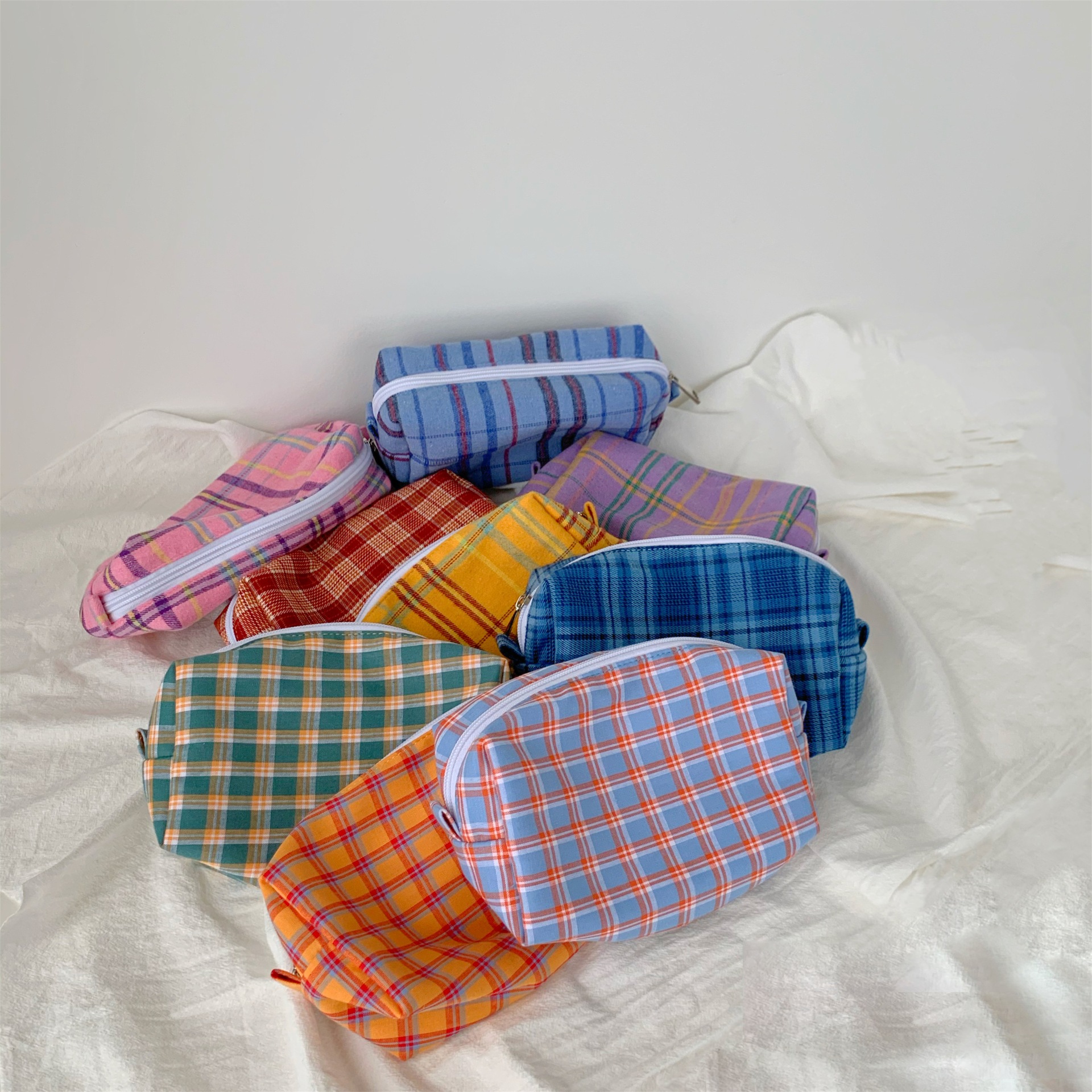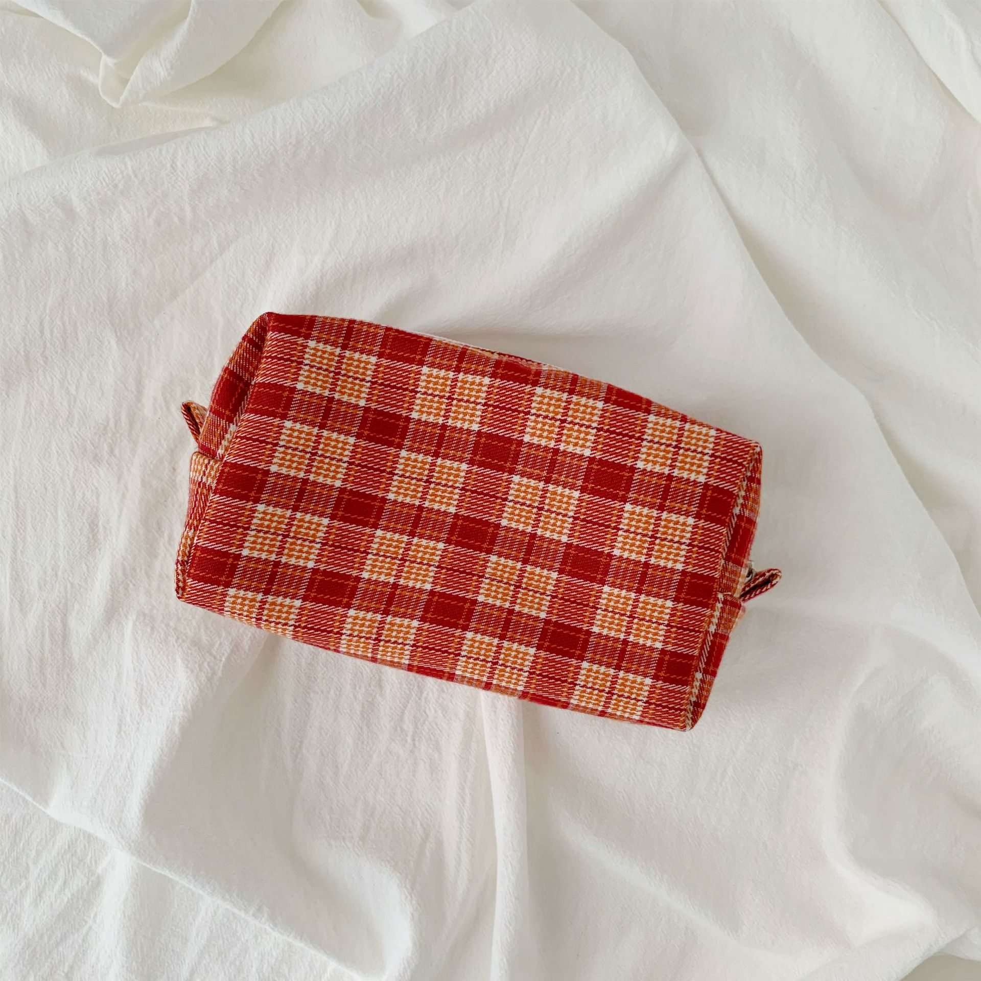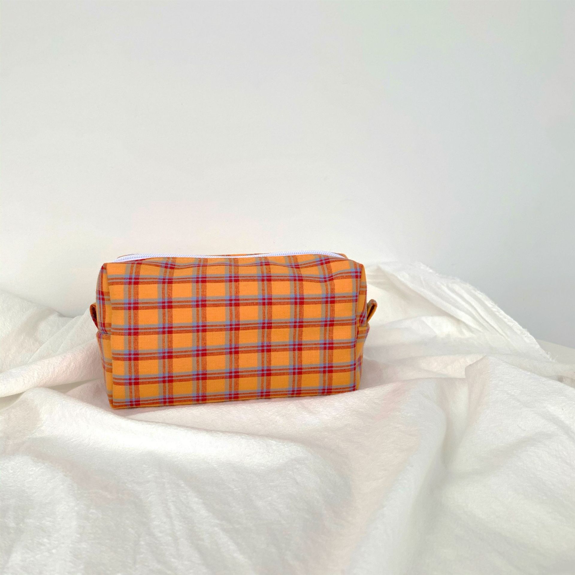 BM 스타일 화장품 가방 다채로운 격자 무늬 보관 세탁 가방 간단한 일본어-한국어 격자 무늬 보관 가방