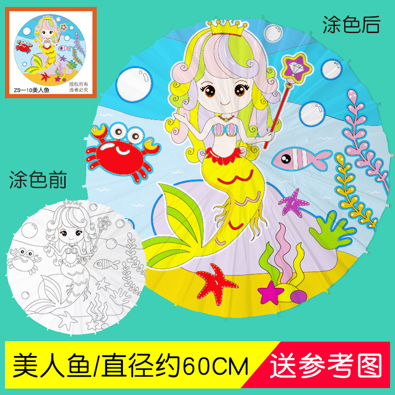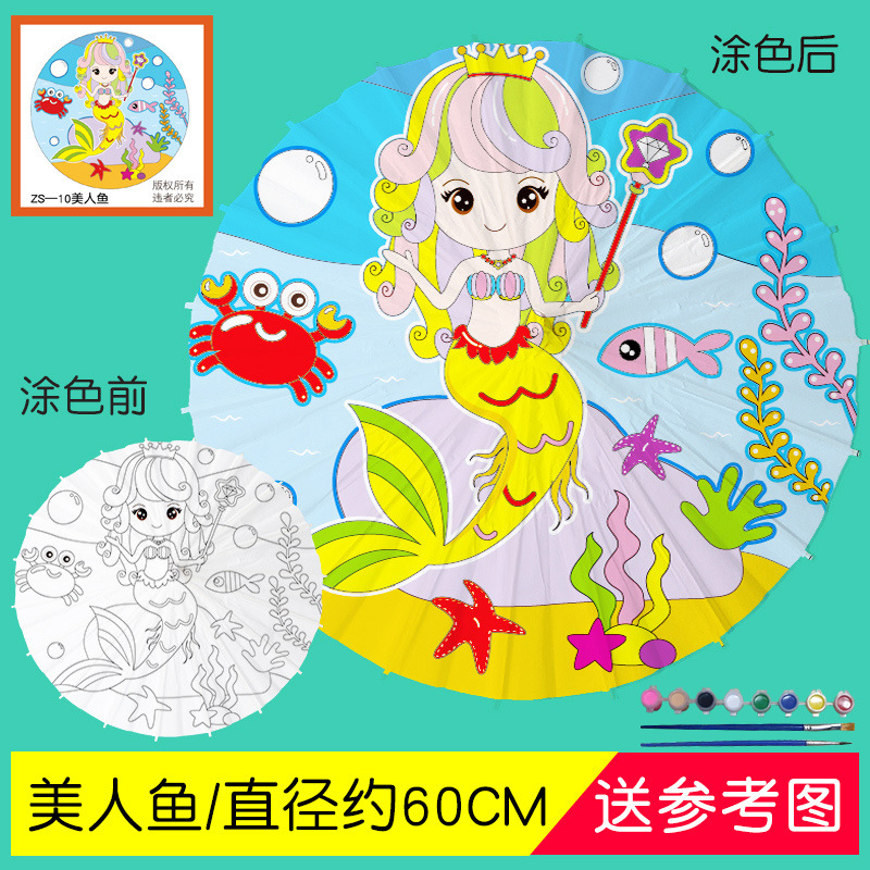 • 플러스 번호-인어 (8 색 페인트 + 2 브러시가있는 우산 직경 60cm)