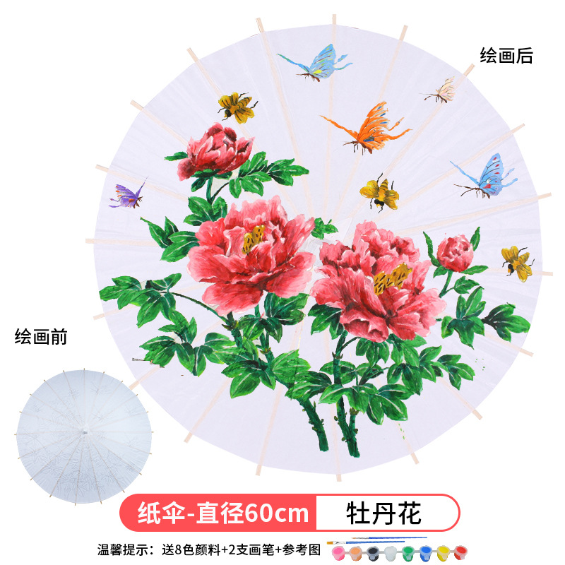 • 플러스 번호-모란 (8 색 페인트 + 2 브러시가있는 우산 직경 60cm)