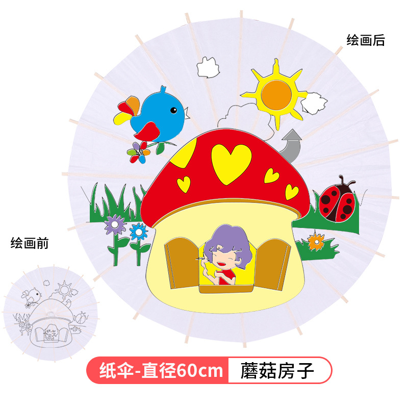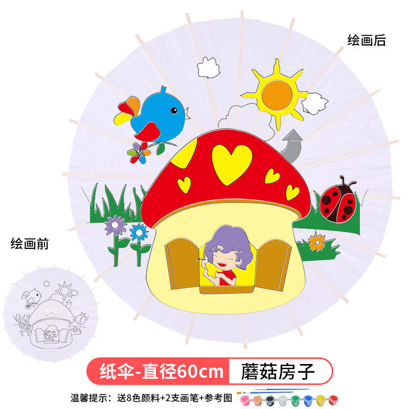 • 플러스 번호-버섯 집 (우산 직경 60cm 8 색 페인트 + 브러시 2 개)