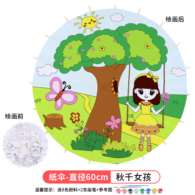 • 플러스 숫자-스윙 걸 (8 색 페인트 + 2 브러시가있는 우산 표면 직경 60cm)