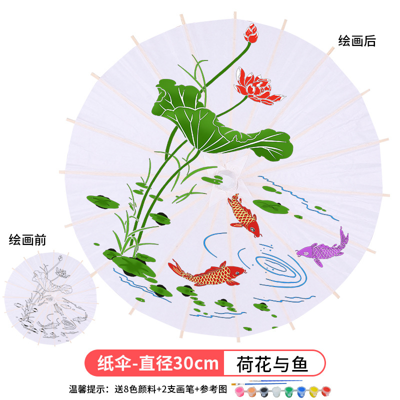 • 중간-연꽃과 물고기 (8 색 페인트 + 2 브러시가있는 우산 직경 31cm)