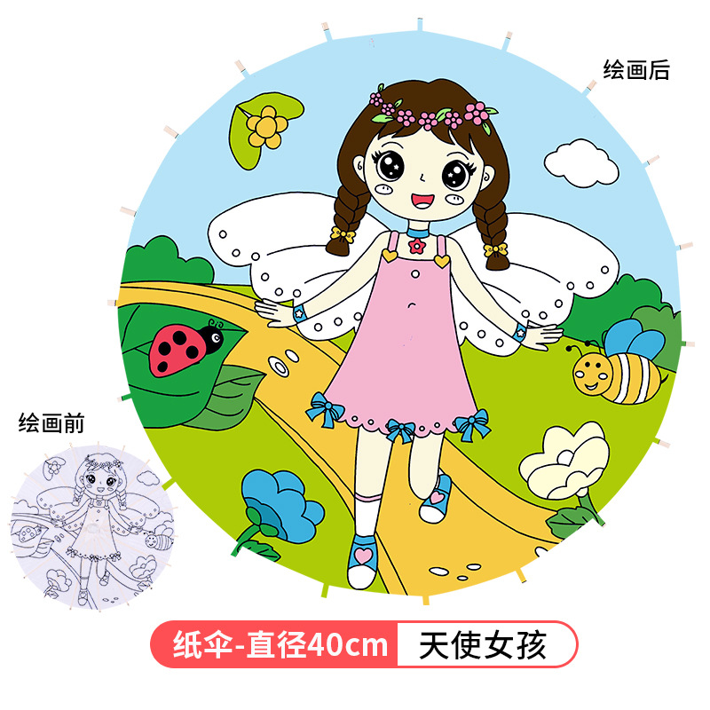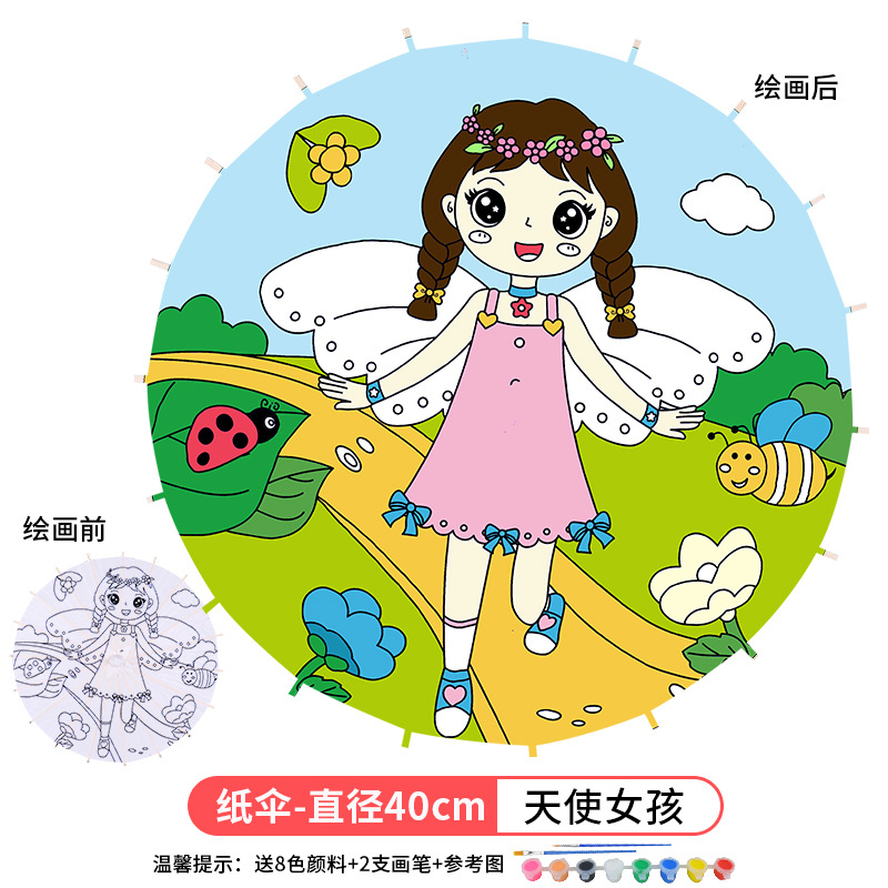• 대형 천사 소녀 (8 색 페인트 + 2 브러시가있는 우산 직경 41cm)