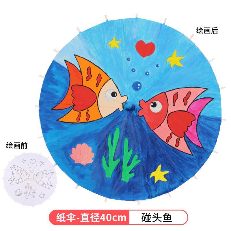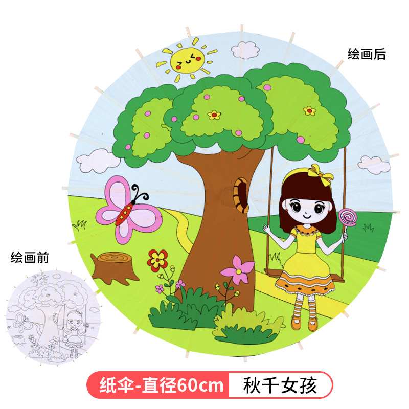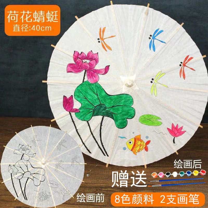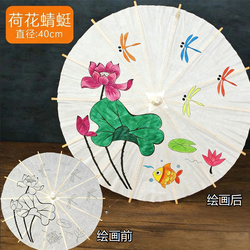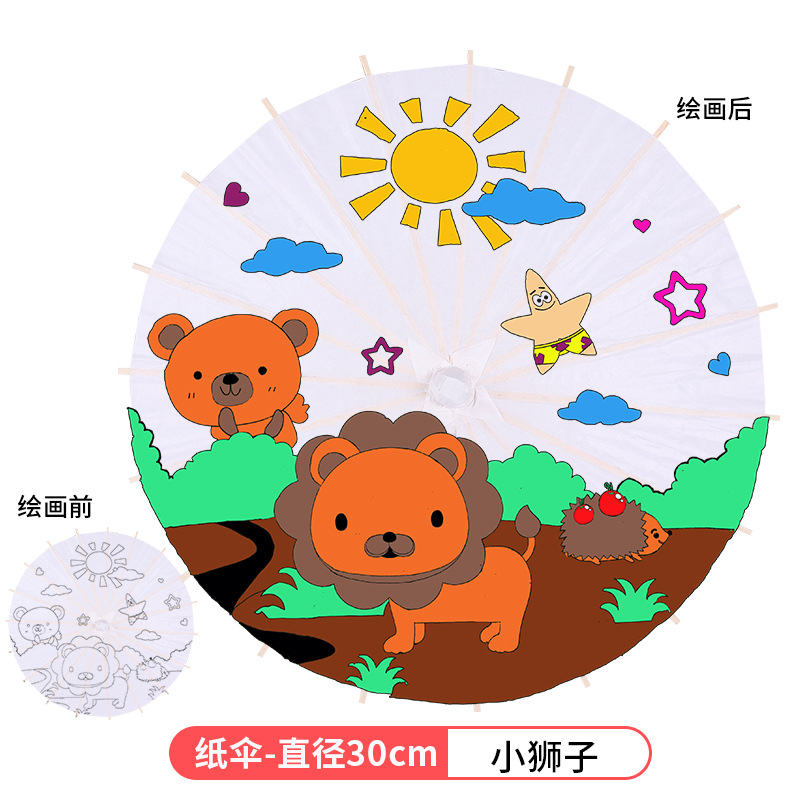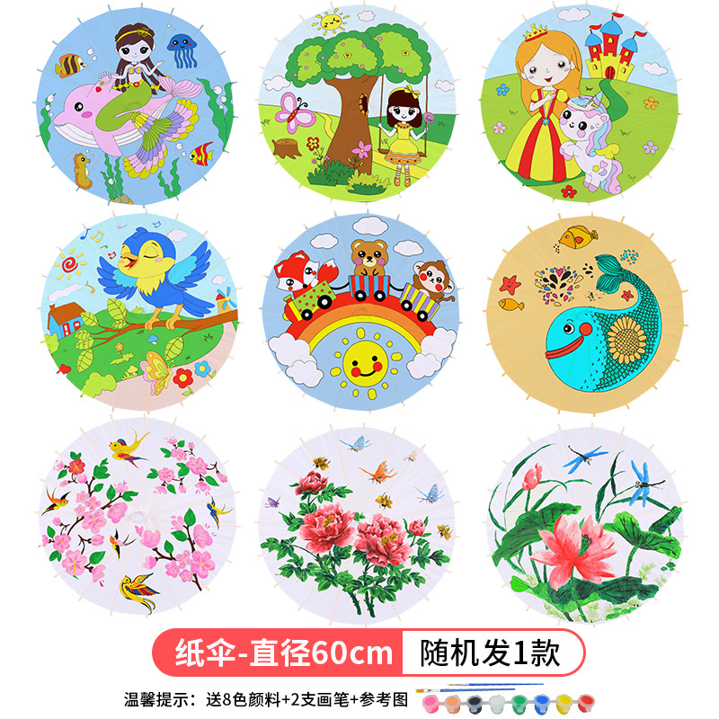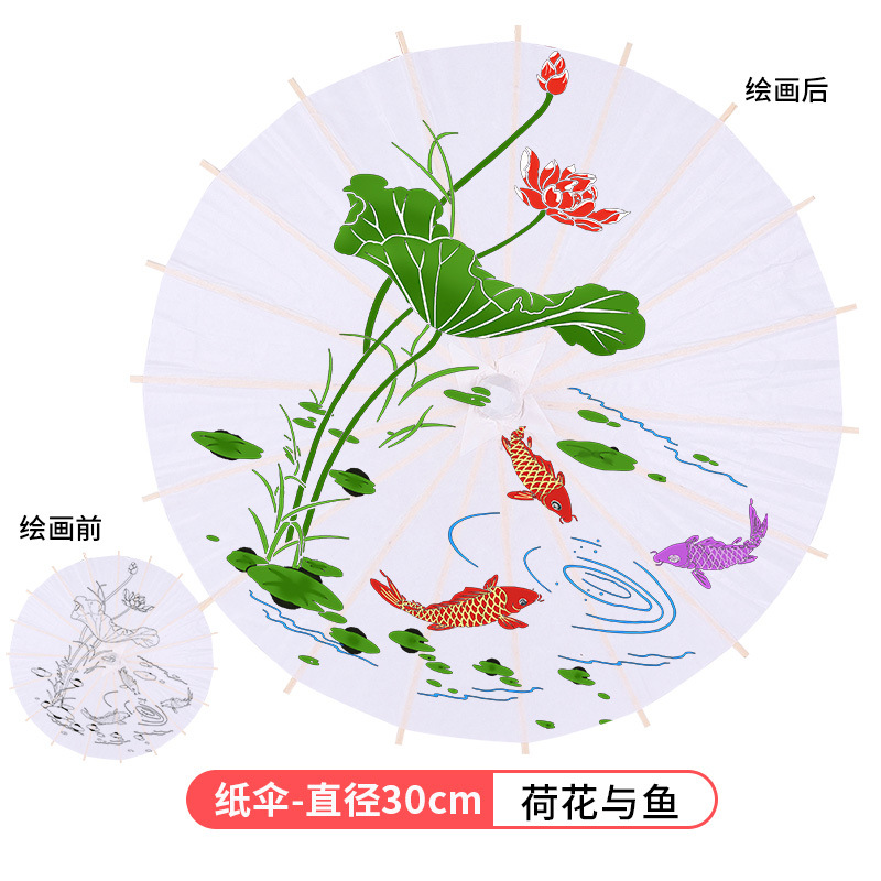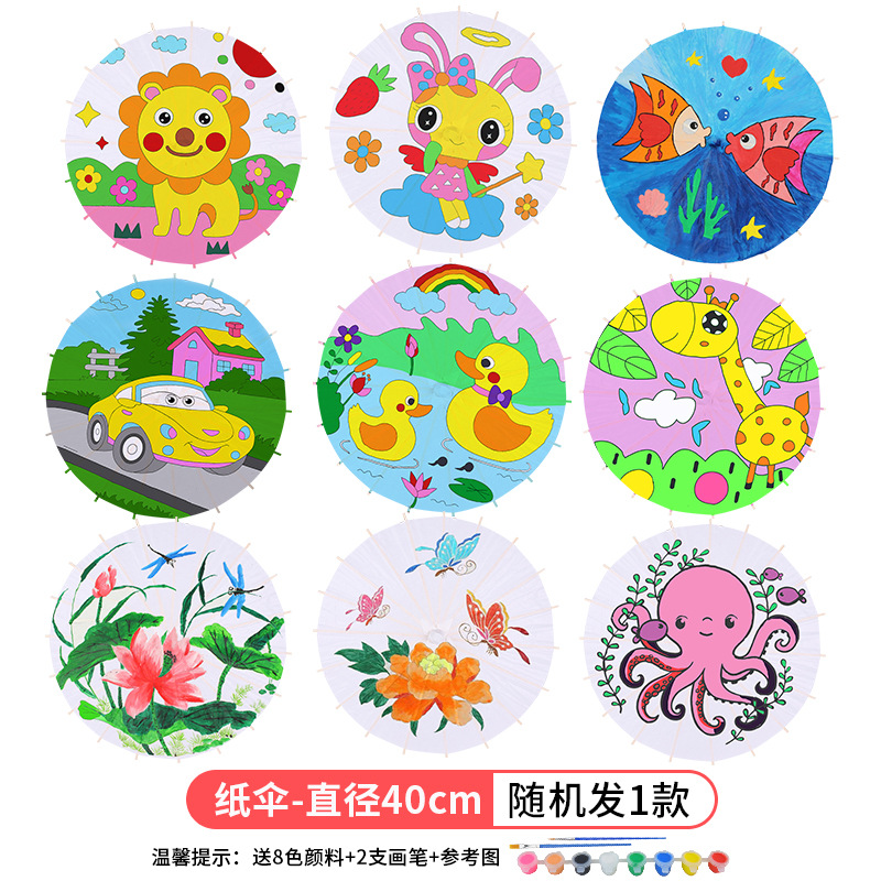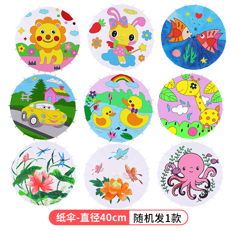 빈 종이우산 어린이 DIY 수공예 재료 유치원 손그림 흰색 우산 중국 고풍 소품스토어 가기