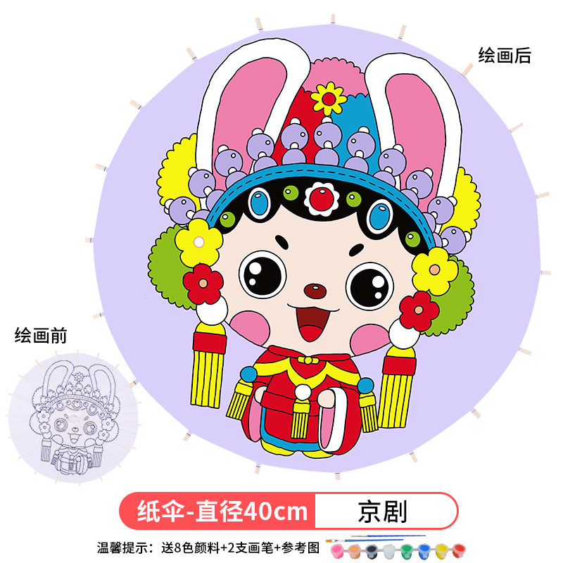 • 숫자 증가-베이징 오페라 (8 색 안료 + 2 브러시로 우산 표면 직경 60cm)