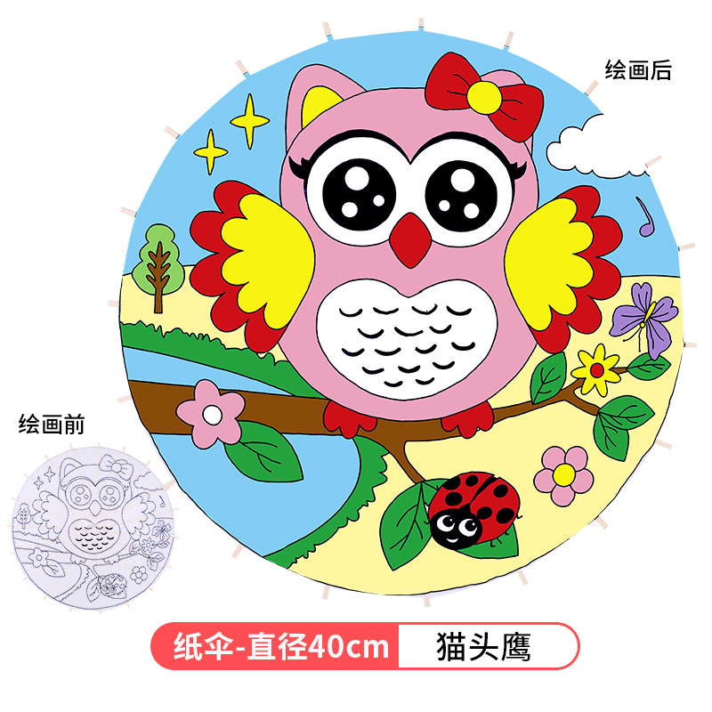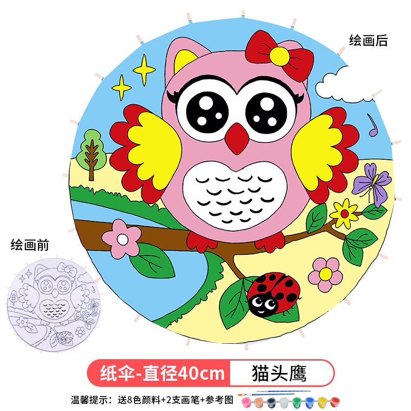 • 플러스 번호-올빼미 (8 색 페인트 + 2 브러시가있는 우산 직경 60cm)