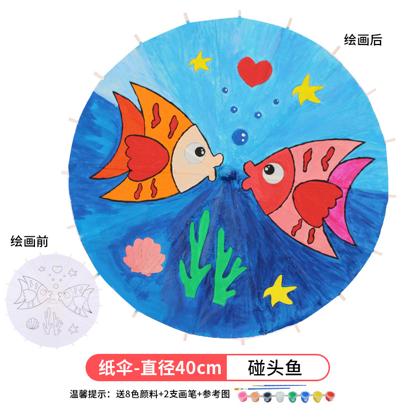 • 대형-작은 물고기 (8 색 페인트 + 2 브러시가있는 우산 표면 직경 41cm)