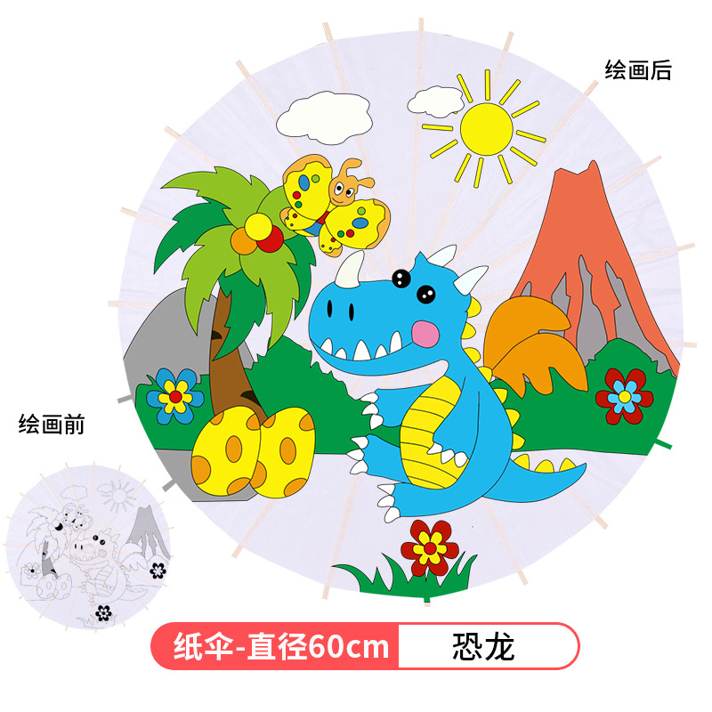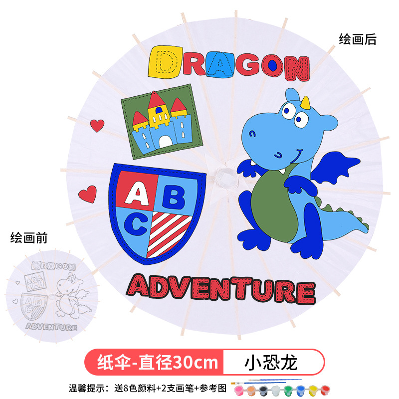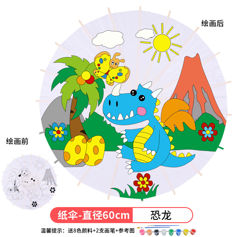 • 플러스 번호-공룡 (8 색 페인트 + 2 브러시가있는 우산 직경 60cm)