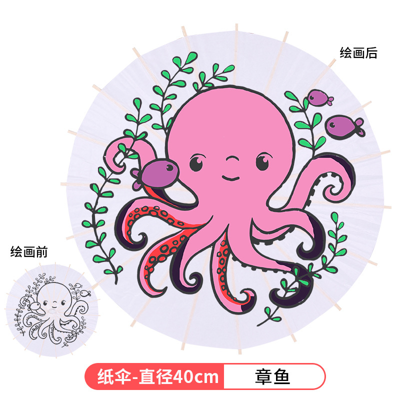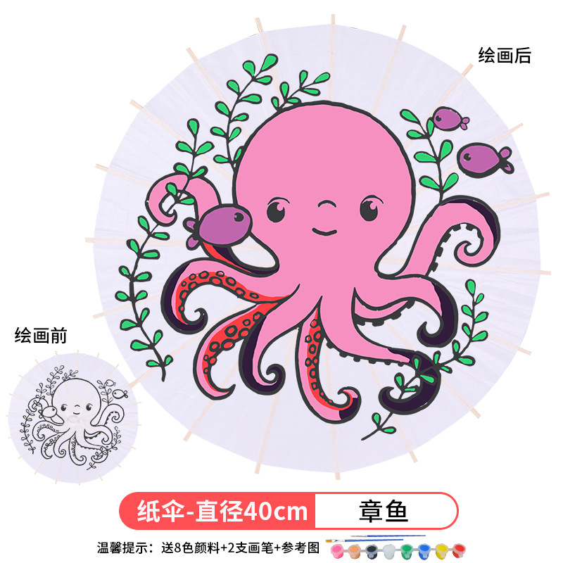 • 대형 문어 (8 색 페인트 + 2 브러시가있는 우산 직경 41cm)