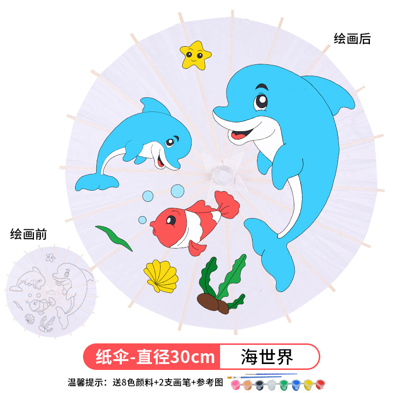 • 중간-돌고래 (8 색 페인트 + 2 브러시가있는 우산 표면 직경 31cm)