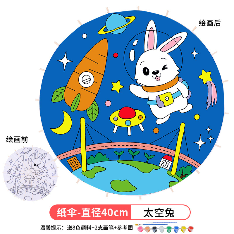 • 넓은 공간 토끼 (8 색 페인트 + 브러시 2 개가있는 우산 표면 직경 41cm)