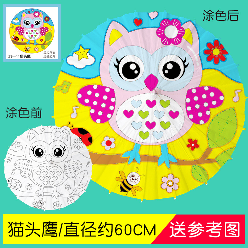 • 대형 올빼미 (8 색 페인트 + 2 브러시가있는 우산 표면 직경 41cm)