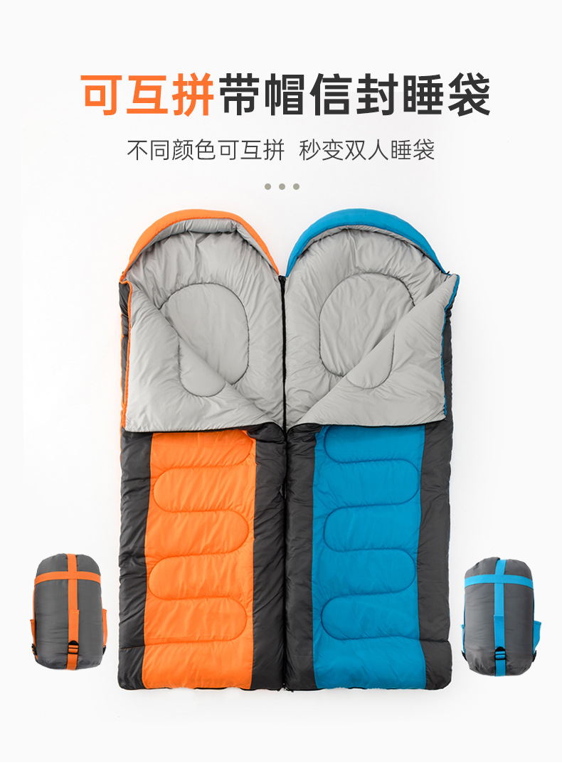 후드가 달린 침낭은 후드가 달린 성인 야외 캠핑 폴리 에스테르 침낭 캠핑 사무실 점심 휴식 캠핑 하이킹으로 서로 결합 할 수 있습니다.스토어 가기