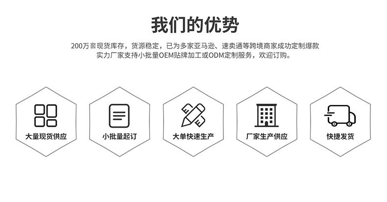 本公司目前拥有专业设备50多台,已为多家亚马逊、速卖通等跨境商家成功定制爆款实力厂家支持小批量OEM贴牌加工或ODM定制服务,支持一件代发。