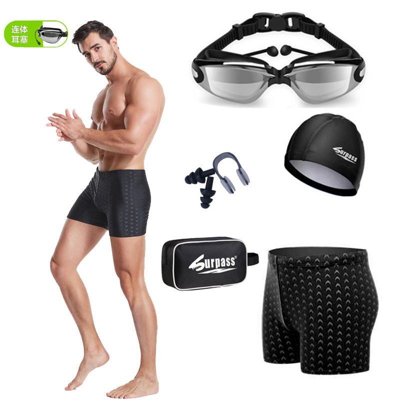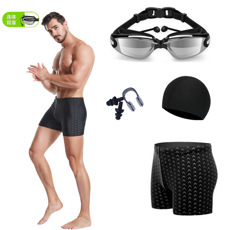 짧은 수영 트렁크 남자의 수영 트렁크 남자의 플러스 사이즈 모조 상어 질감 수영복 수영 모자 수영 고글 장비의 세대의 머리