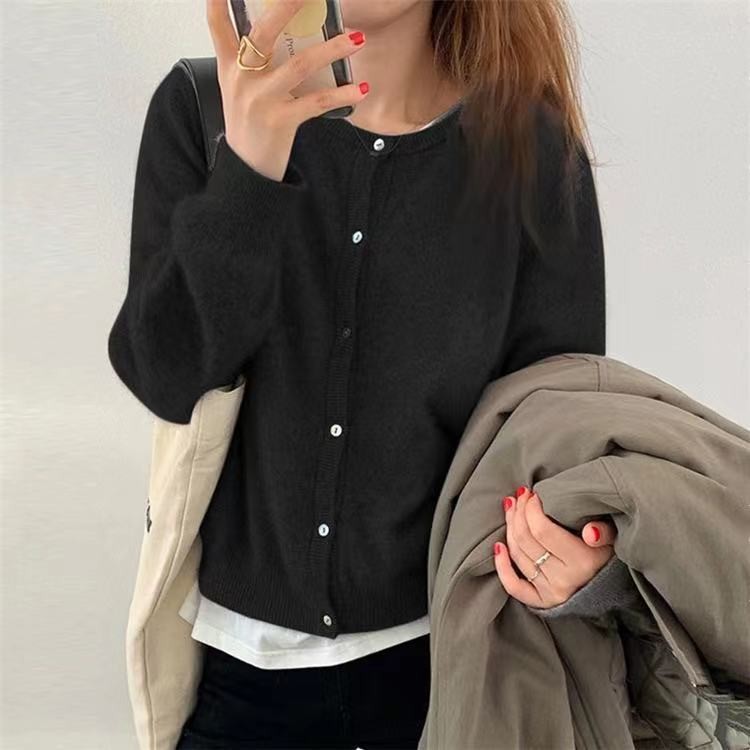 봄과 가을 새로운 라운드 넥 모조 너구리 모피 짧은 스웨터 스웨터 캔디 컬러 여성을위한 작은 캐주얼 탑 코트스토어 가기