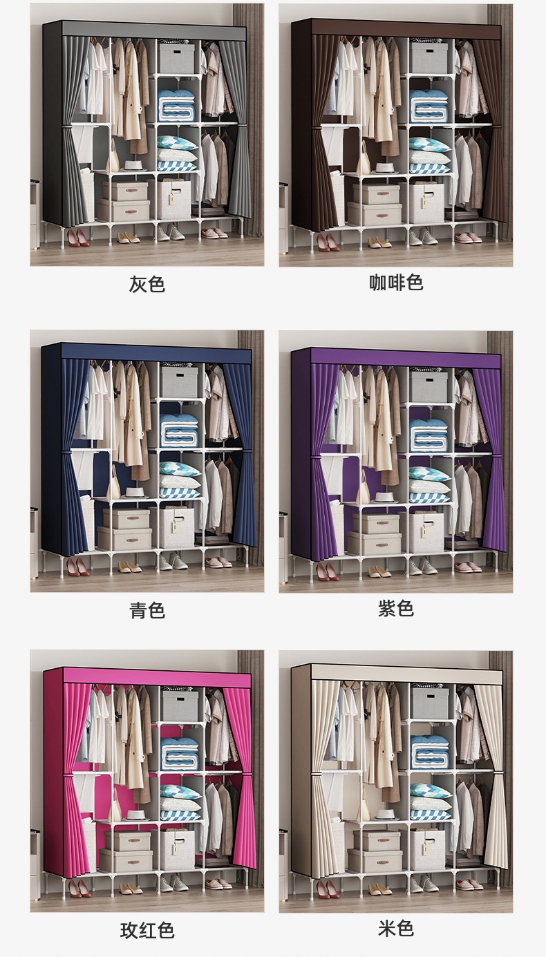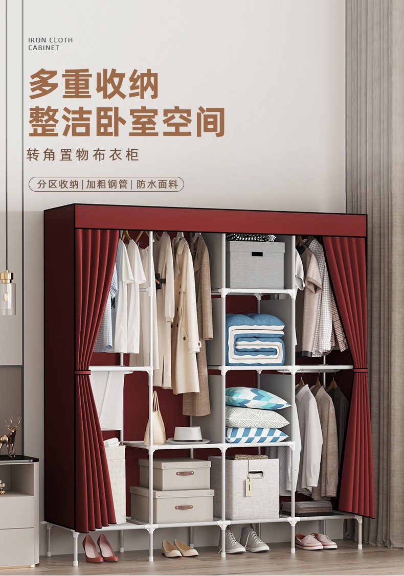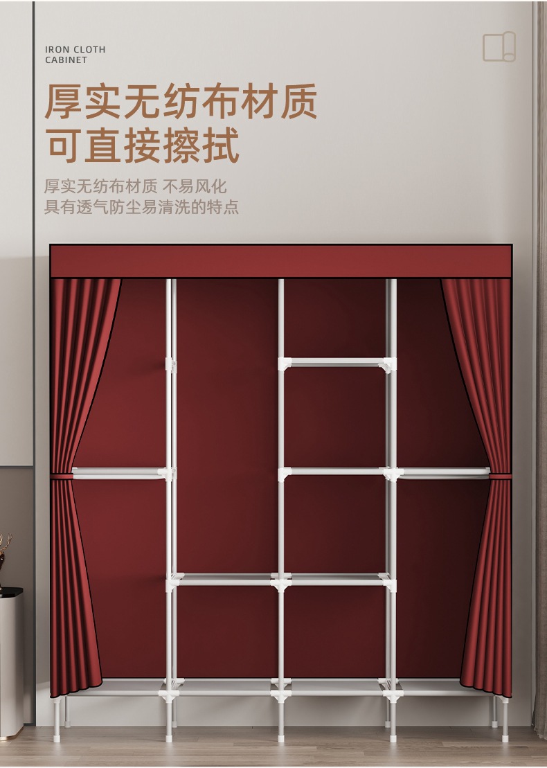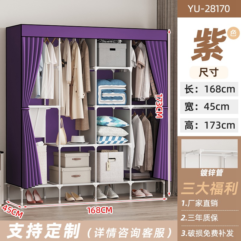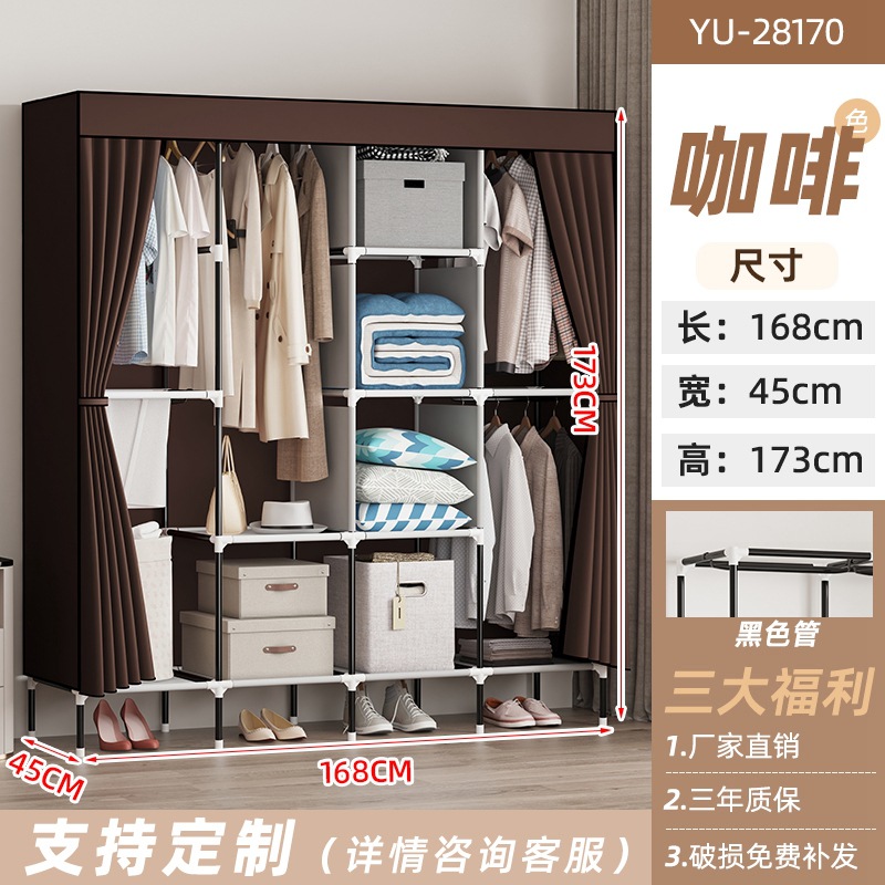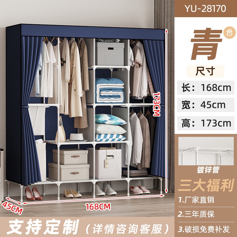 옷장 간단한 천 옷장 강철 파이프 두꺼운 강화 지퍼 완전 폐쇄 단일 기숙사 옷장 부직포 옷장스토어 가기