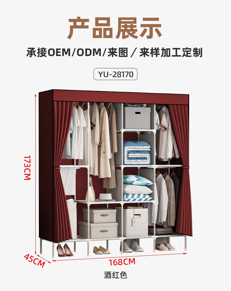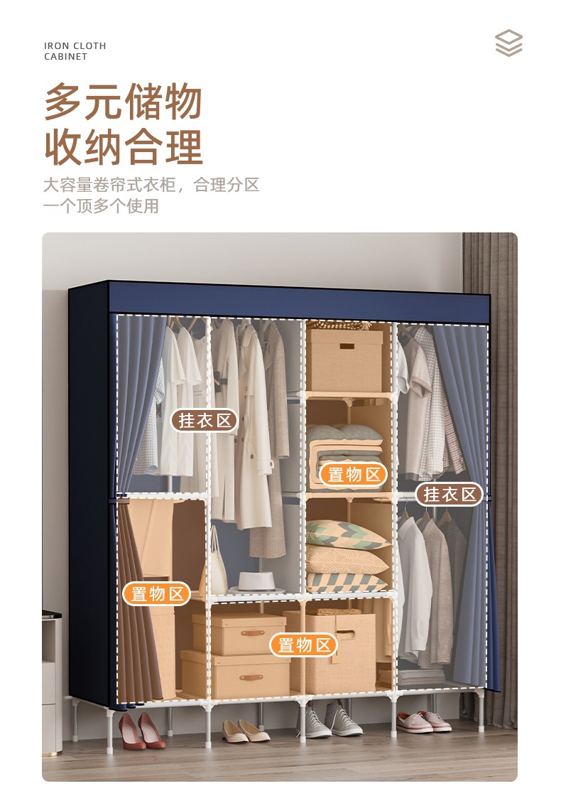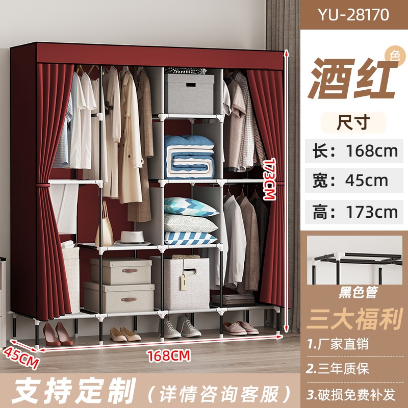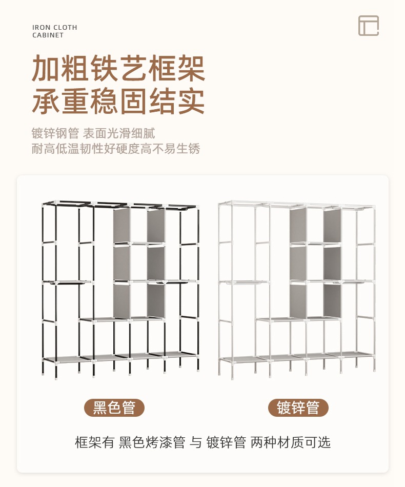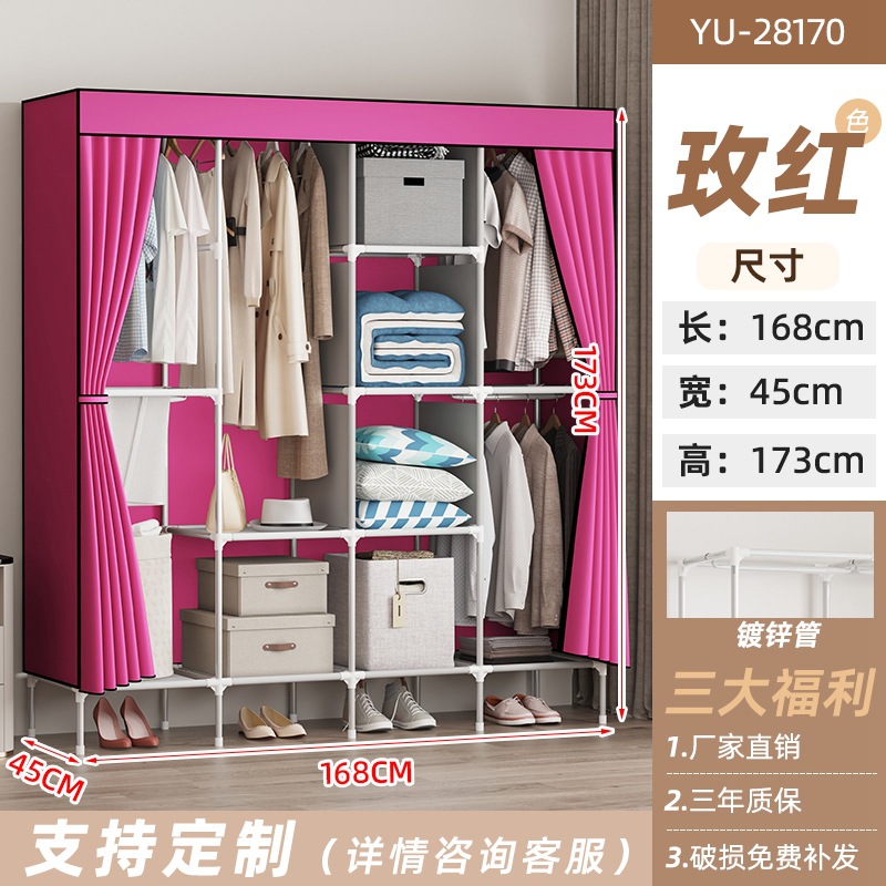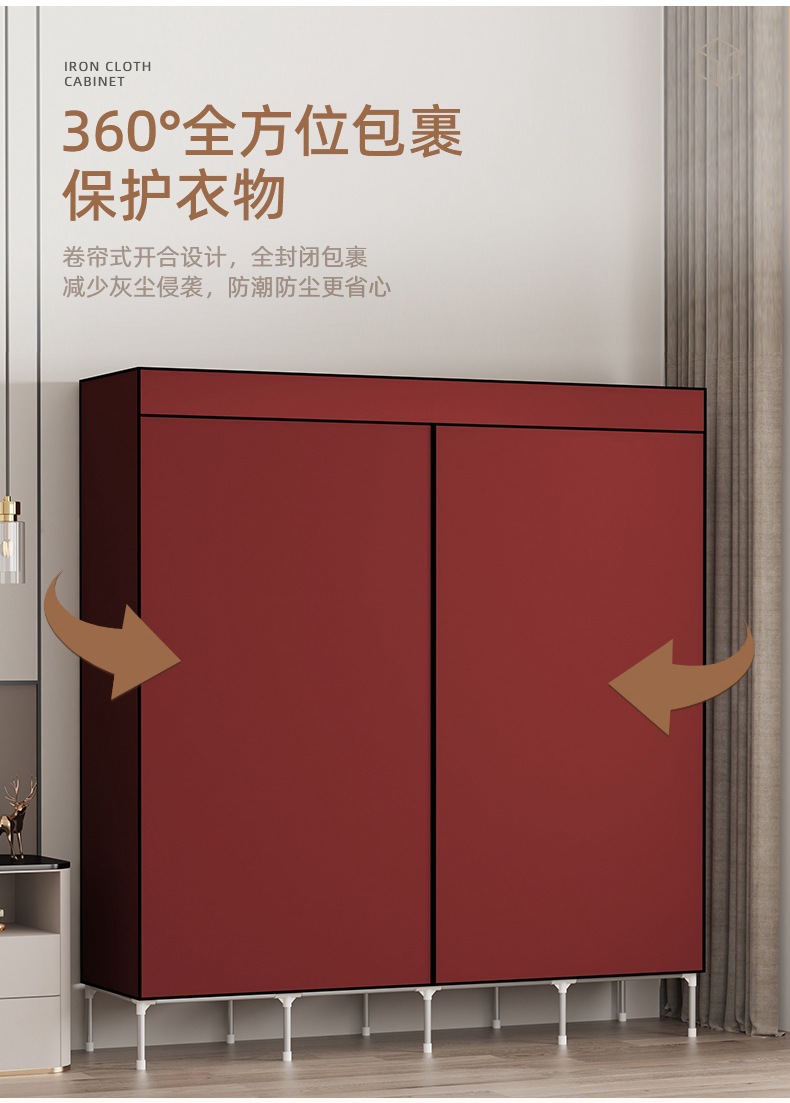 옷장 간단한 천 옷장 강철 파이프 두꺼운 강화 지퍼 완전 폐쇄 단일 기숙사 옷장 부직포 옷장스토어 가기