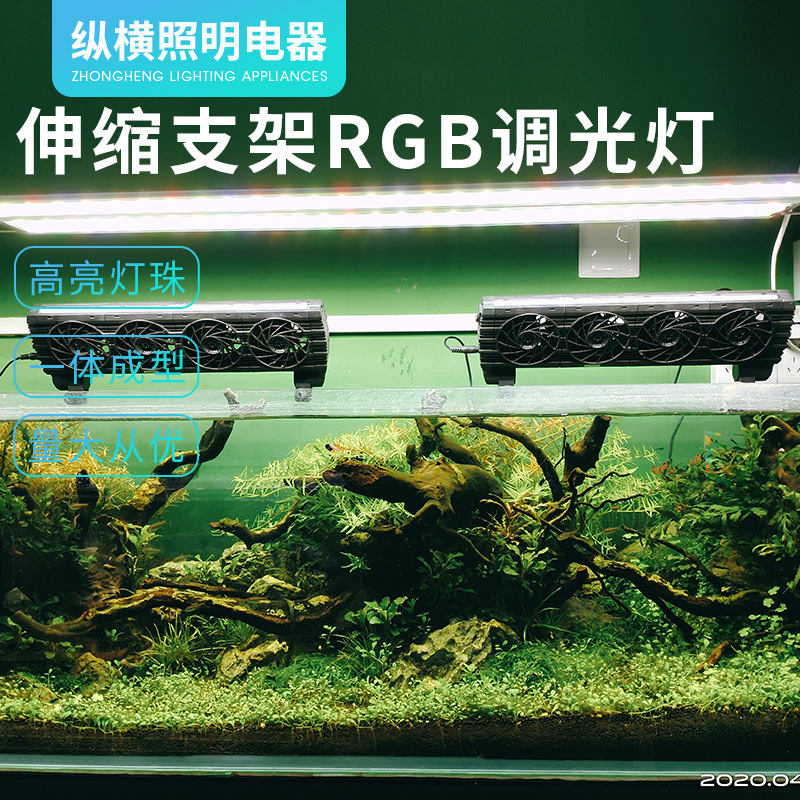수생 잔디 램프 수족관 텔레스코픽 브래킷 RGB 터치 디밍 어항 램프 열대 우림 수생 식물 램프 홀더 수륙 양용 램프