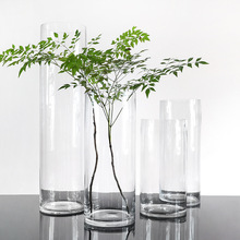 简约圆筒花瓶家居透明玻璃花器超长直筒落地婚庆插花容器大号水培