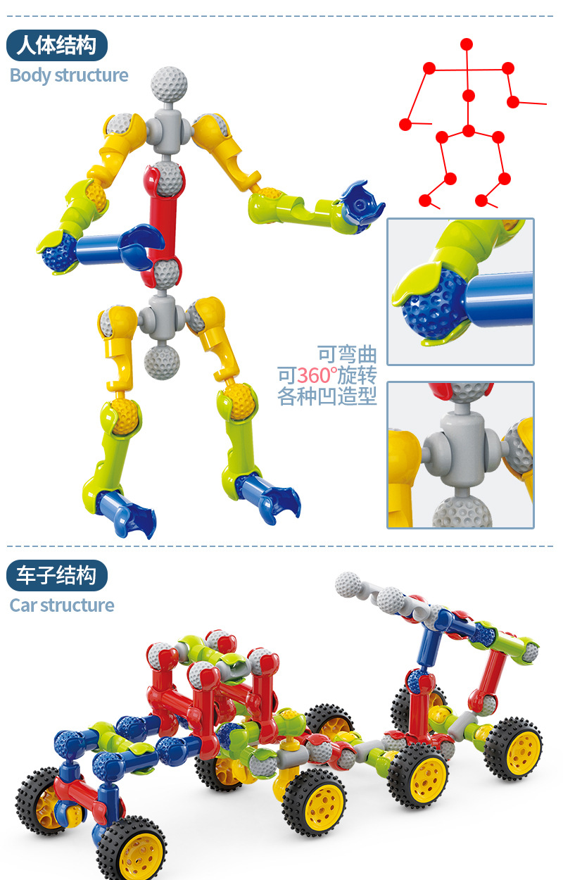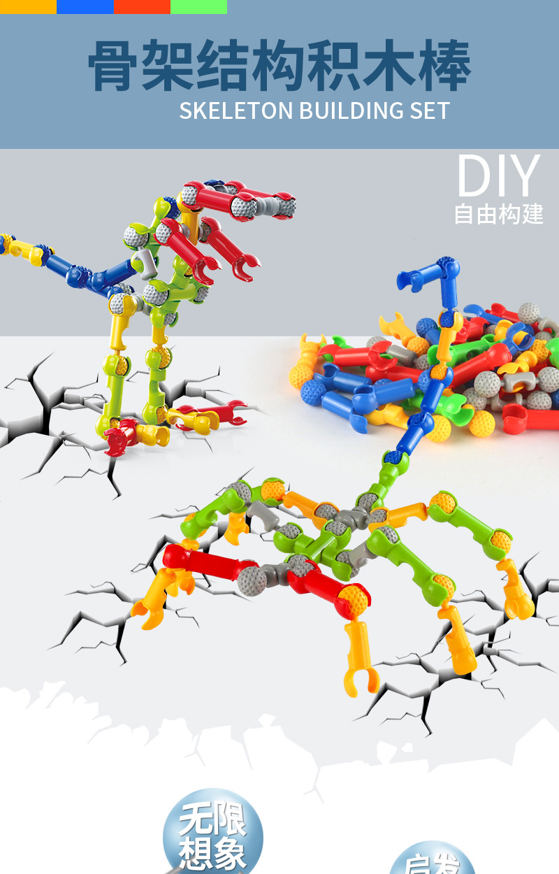 어린이 빌딩 블록 다기능 해골 조인트 스틱 퍼즐 DIY 조립 장난감 소년 소녀 3-4-6 세