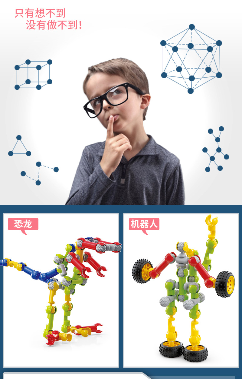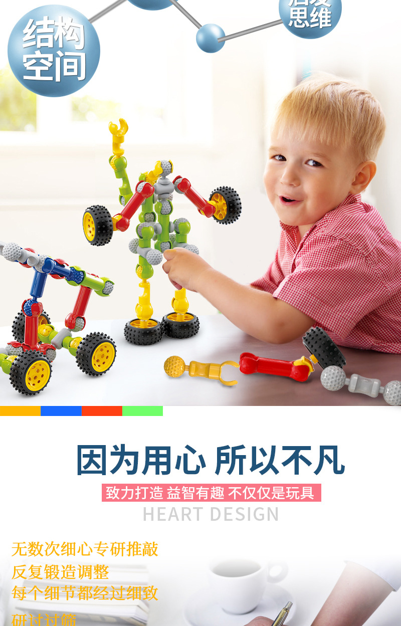 어린이 빌딩 블록 다기능 해골 조인트 스틱 퍼즐 DIY 조립 장난감 소년 소녀 3-4-6 세스토어 가기