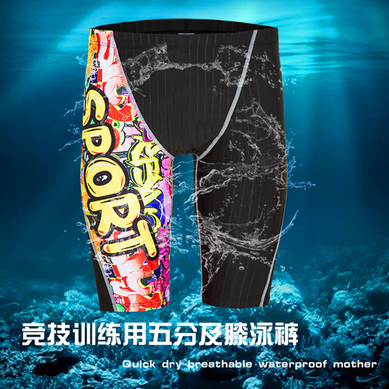 수영 트렁크 남성용 당황 방지 5 점 수영 트렁크 속건 레이싱 스포츠 남성용 중간 다리 전문 훈련 수영 트렁크 패션스토어 가기